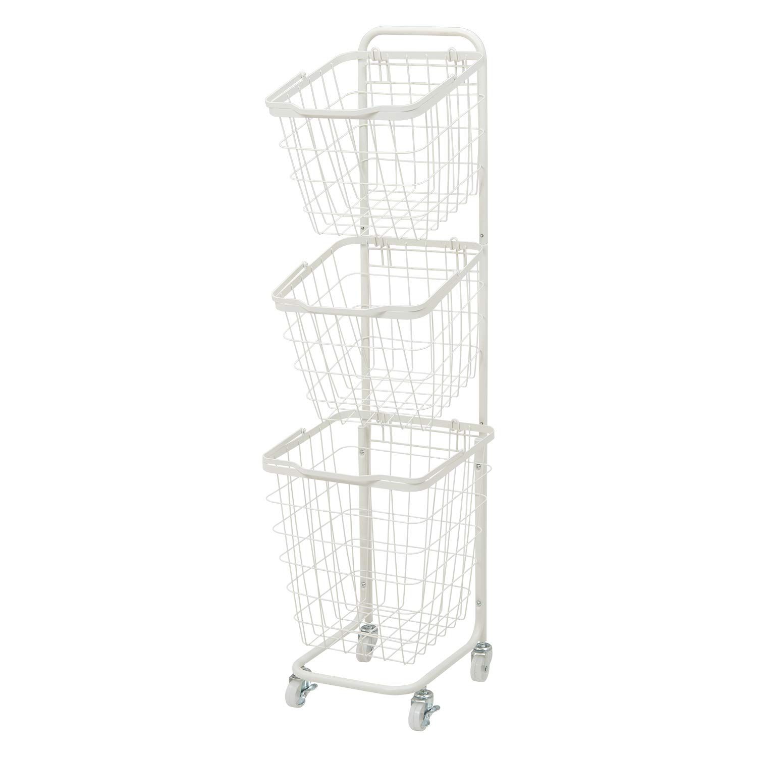 新品 萩原(Hagihara) ランドリーラック バスケット 脱衣 洗濯物 かご 3段 【取り外し・積み重ねOK】 大容量 ランドリーワゴン ワイヤー キャスター付 ホワイト KR-3971WH
