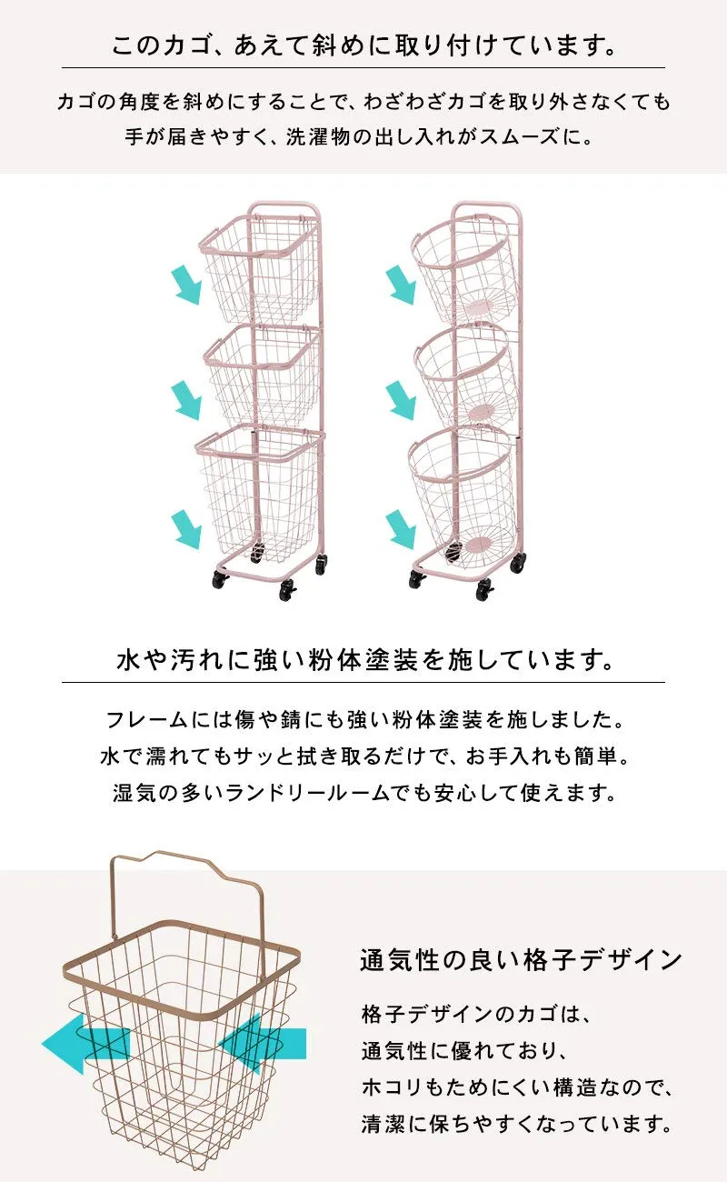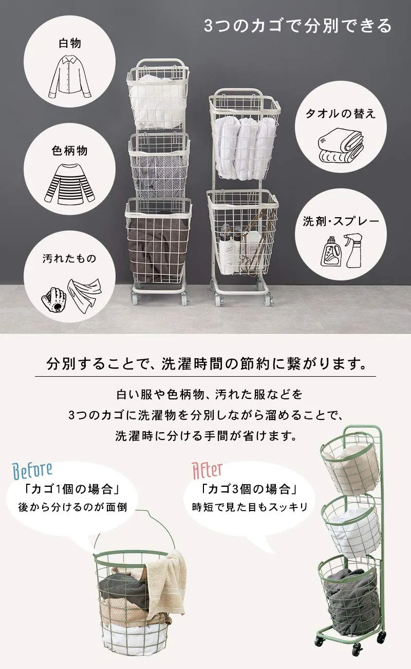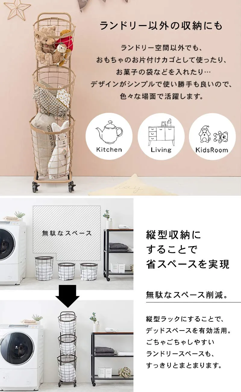 萩原(Hagihara) ランドリーラック バスケット 脱衣 洗濯物 かご 3段