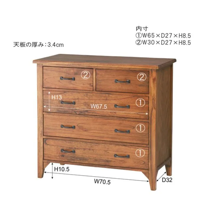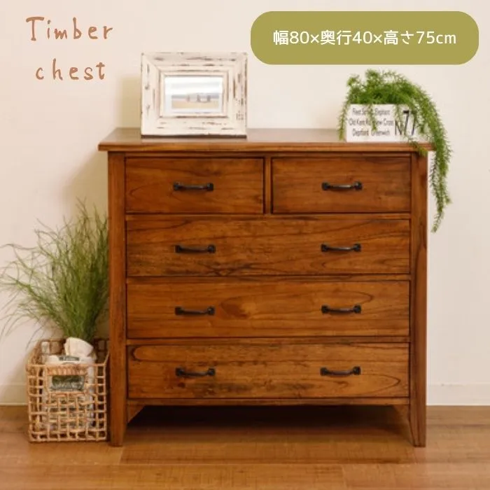 チェスト 引き出し収納 タンス 幅80cm ティンバー 天然木 木製 リビング 北欧 東谷 PM-307 【代引き不可】【完成品】