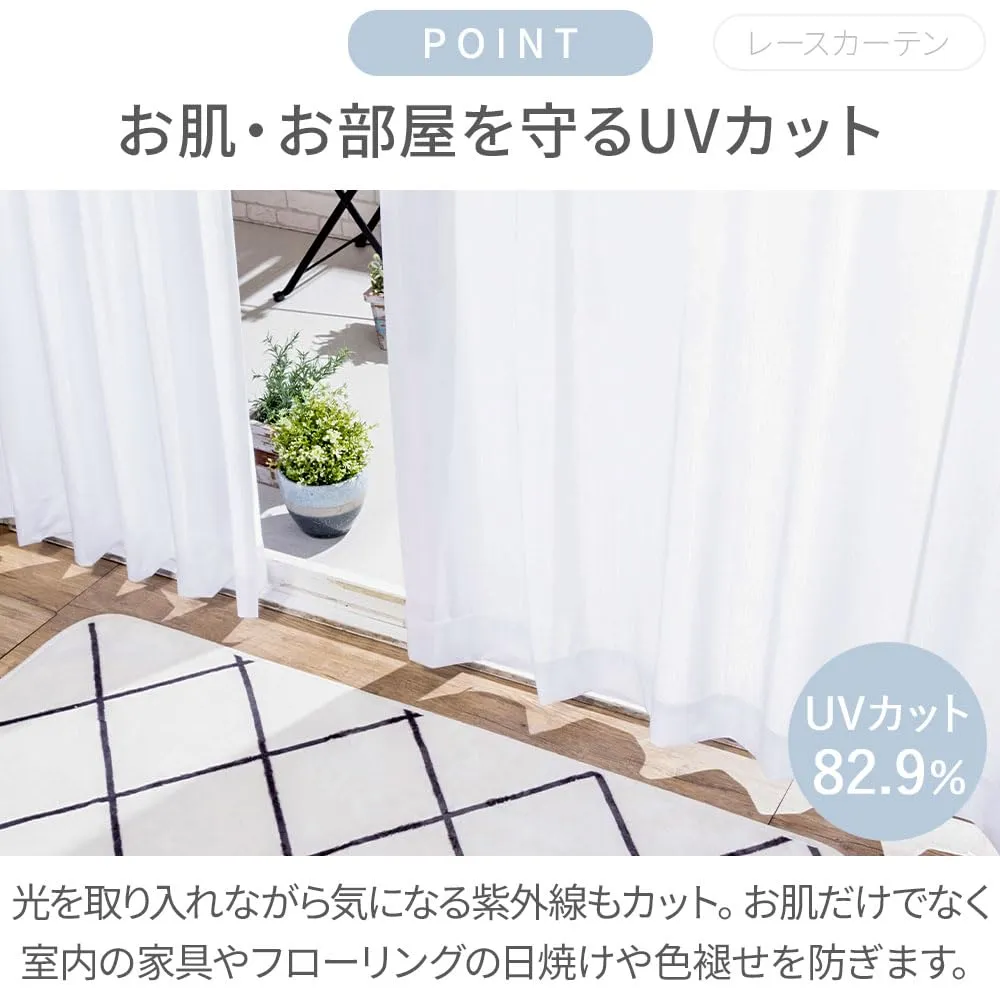 外から見えにくい、UVカットのあるレースカーテンも付いたお買得セット。