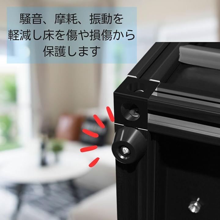 「床を保護する役割」ゴム製の脚は騒音、摩耗、振動を軽減し、床を傷や損傷から保護します。
