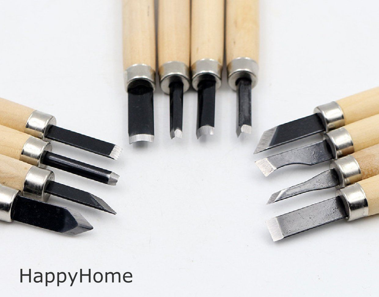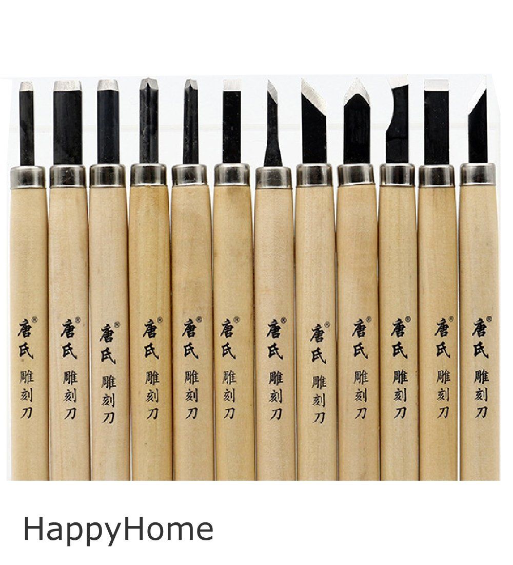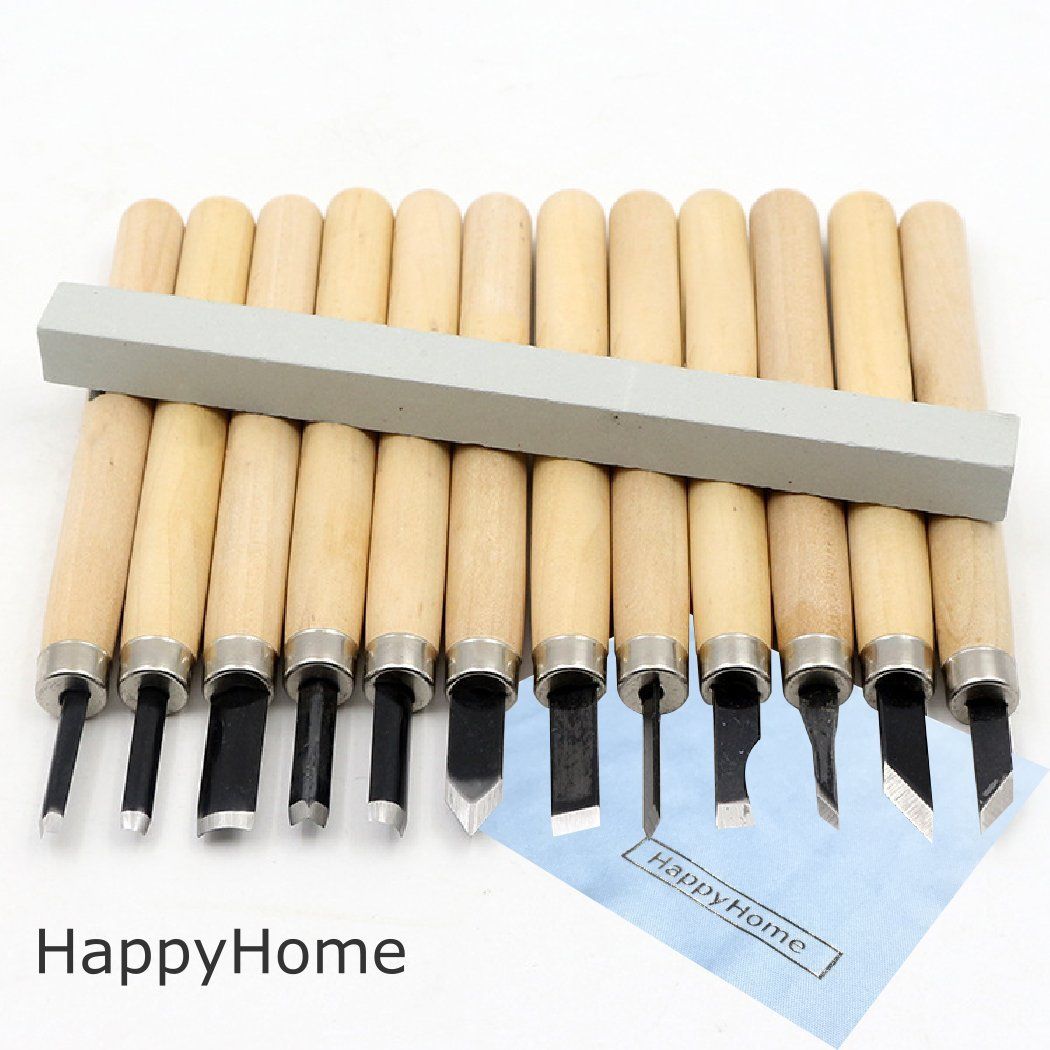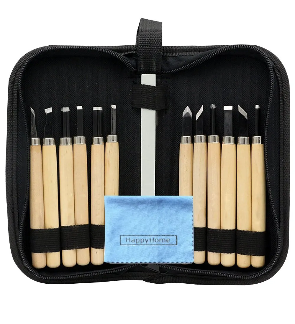 新品 HappyHome 彫刻刀 12本 セット 砥石付き 収納ケース クリーニングクロス付き 木彫り 木工道具