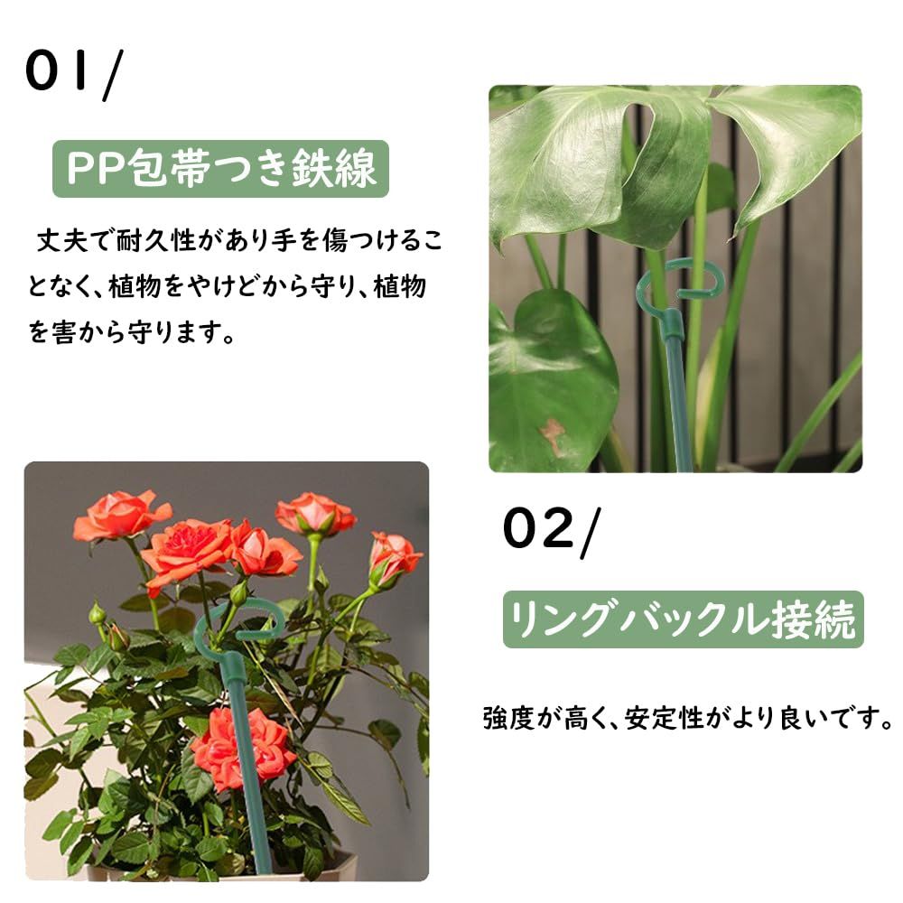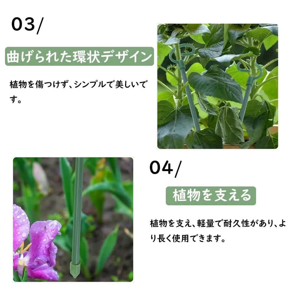 【優れたデザイン】スタンドが土に簡単に差し込めるように、底部は先細りのデザインになっています。セットには2つの長さのスタンドが含まれており、植物のサイズや高さに合わせて調整できます。