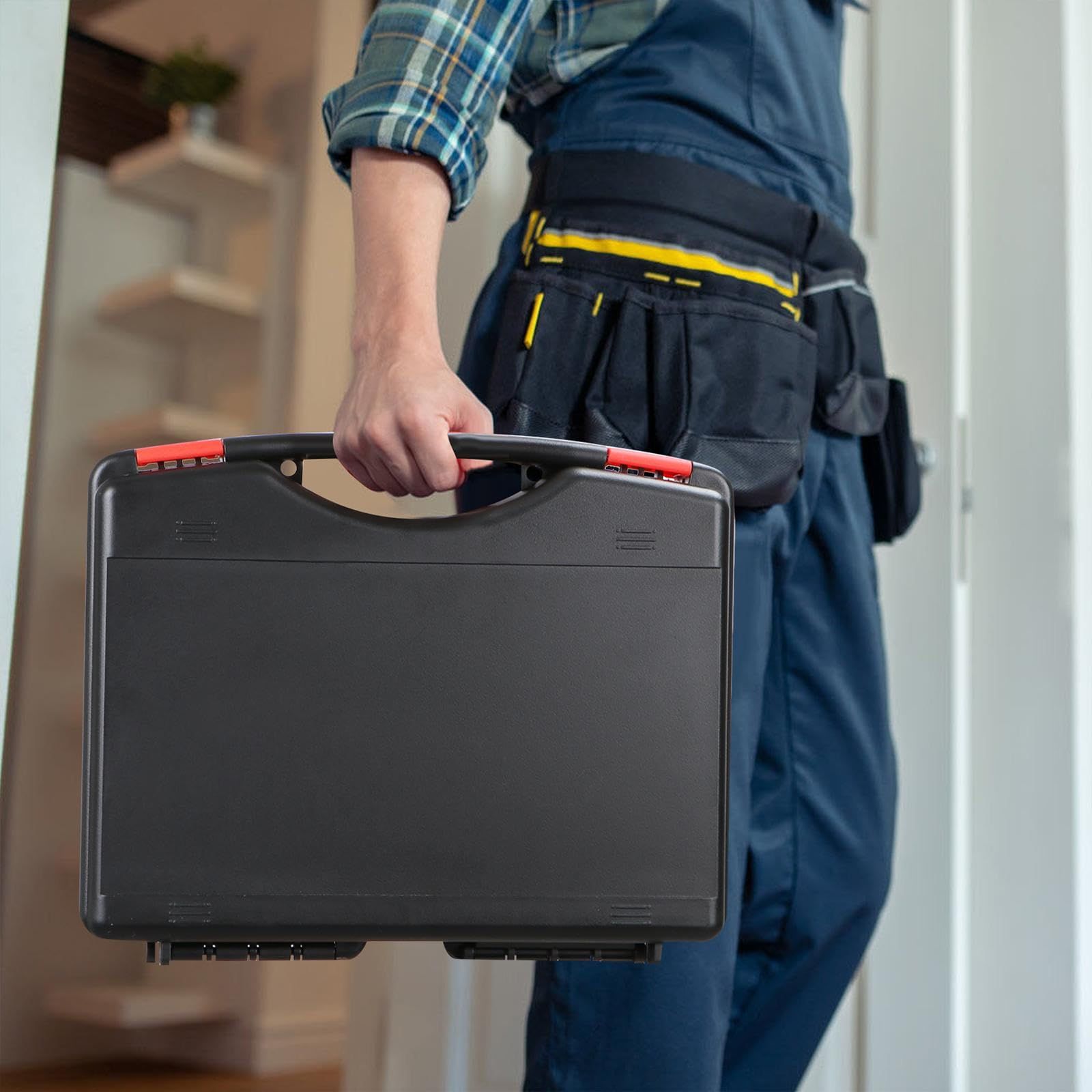 【ナットとボルトのネジチェッカー】: 44個のナットとボルトのネジチェッカー、収納ボックス付き、44個のオス/メスゲージ、赤いゲージはメートル法(21個)、青いゲージはインチ(23個)です。 -