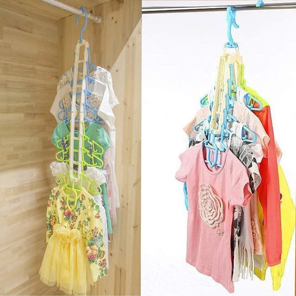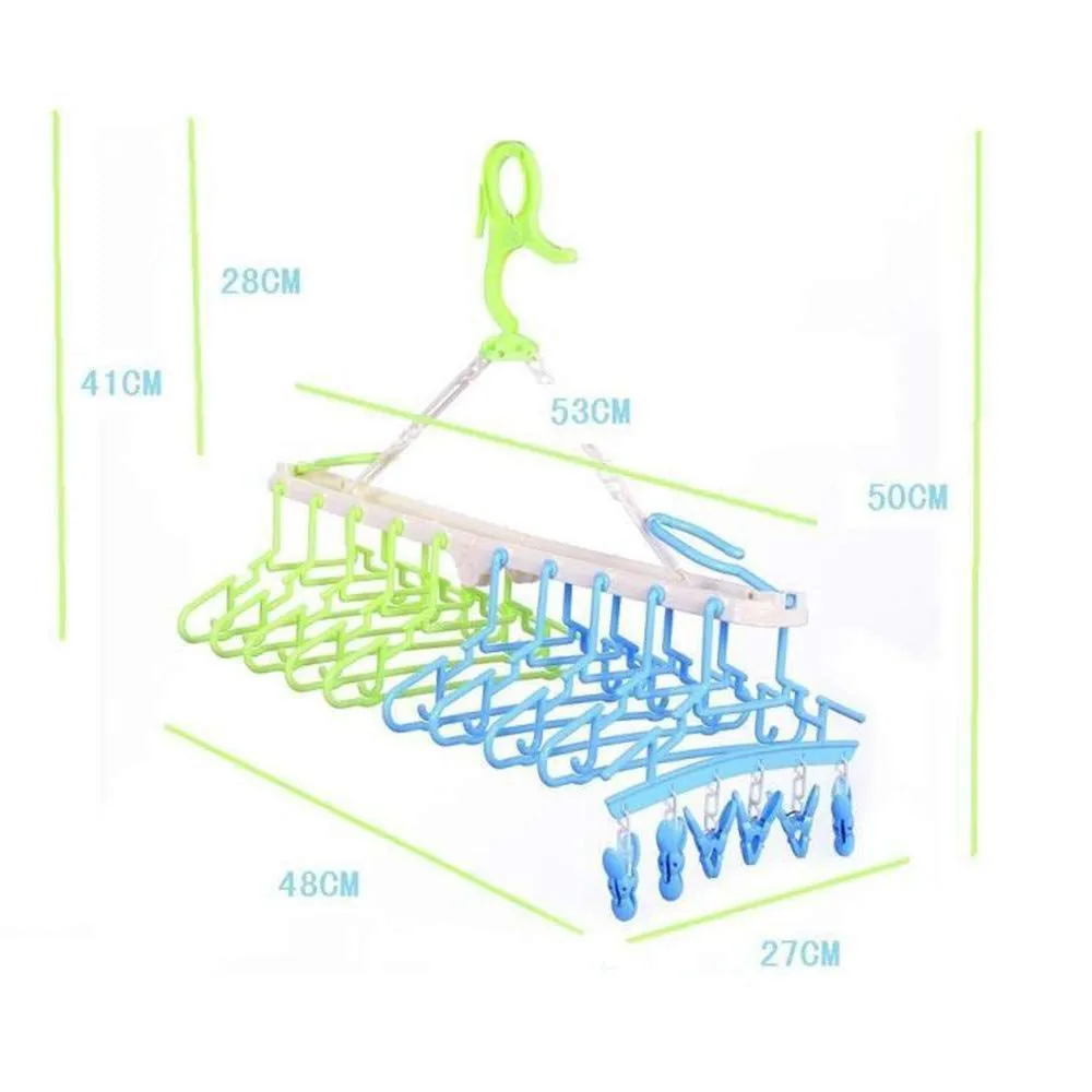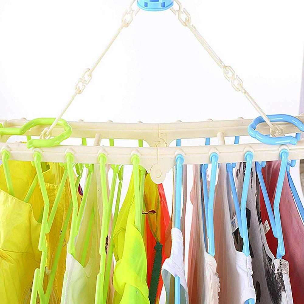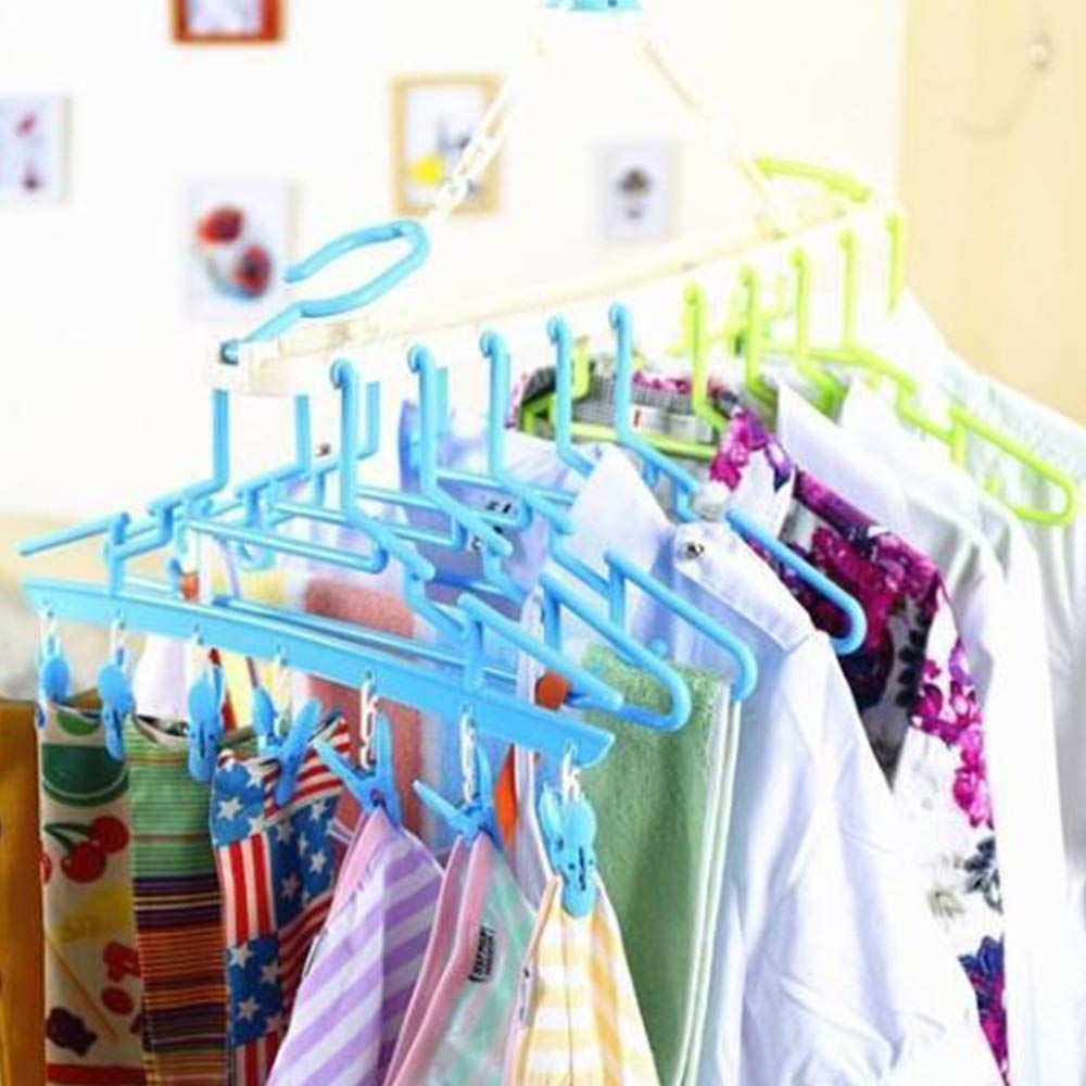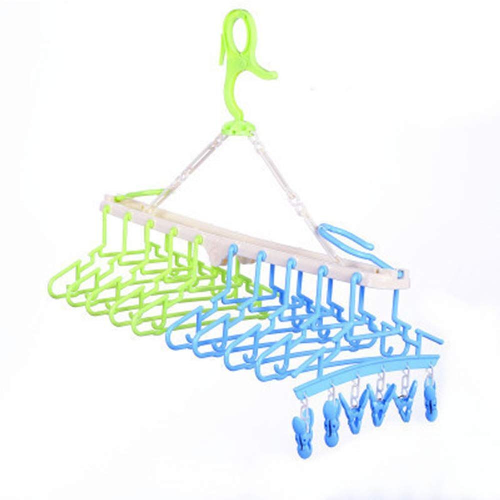 SunnFx 赤ちゃん10連ハンガー ベビー用ハンガー クリップ付き 折りたたみ 取り外し 子供ハンガー キッズハンガー ベビーハンガー ハンガーラック 子供用 バランス 360度回転 (ブルー*グリーン)