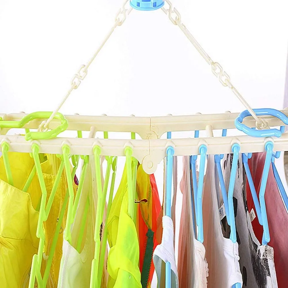 360度回転:ハンガーは360度回転するフックで、太陽光線で吊り下げ方向を効果的に変え、衣類をすばやく乾かします。 ハンガーにはへこみがありますので、ストラップが外れる心配はありません。