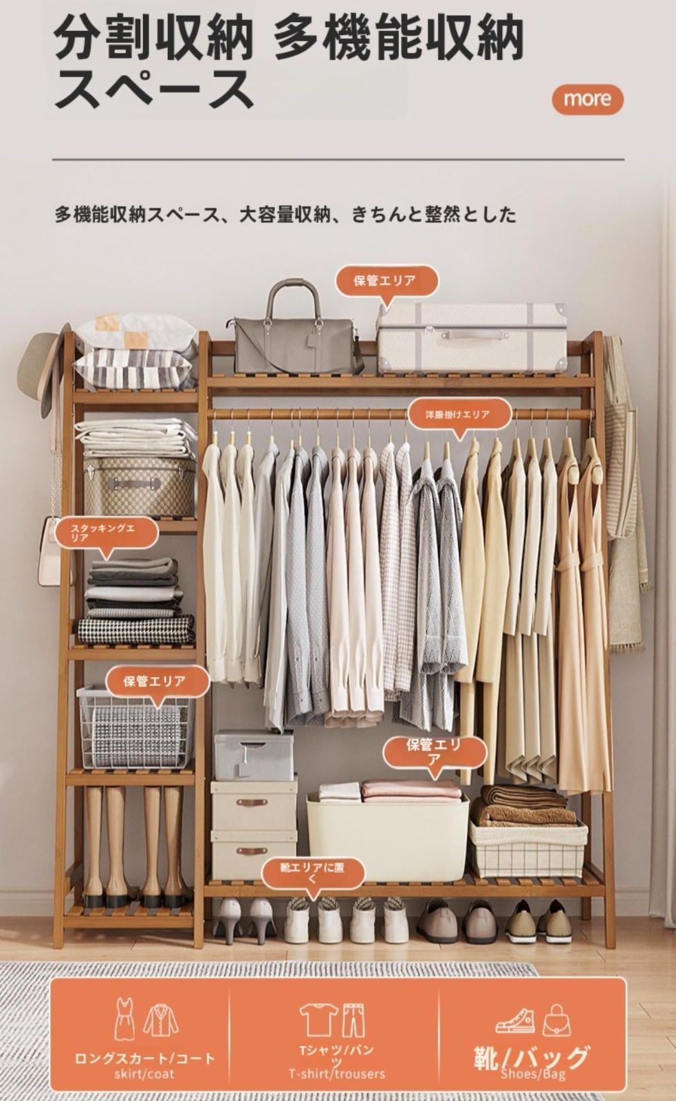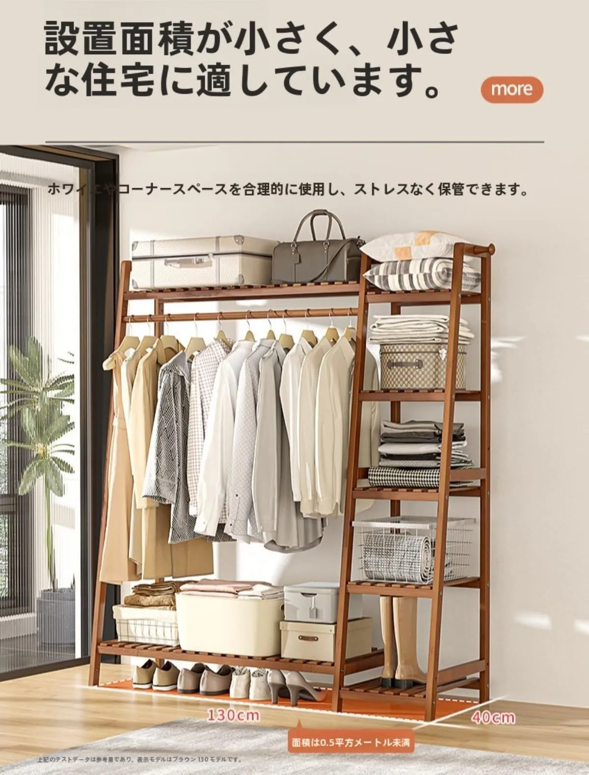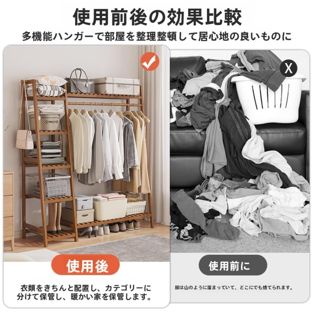 【安定感抜群】自立型で頑丈、日常使いでもぐらつきにくい構造。 このハンガーラックは、ワードローブとしても洋服ハンガーとしても使える多機能収納家具です。天然竹製で環境に優しく、耐久性とインテリア性を兼ね備えています。頑丈な構造により大容量の衣類をしっかり支え、コート掛けや物干しスタンドとしても活躍。自立型なので設置も簡単で、省スペース設計により玄関や子供部屋、室内の限られたスペースにもぴったり。洋服や小物を整頓し、すっきりとした暮らしをサポートします。 最後までご確認頂き誠にありがとうございました。 上記をご確認頂き、ご購入いただけましたら幸いです。 何かご不明な点がございましたらお気軽にメッセージからお問い合わせ下さい。