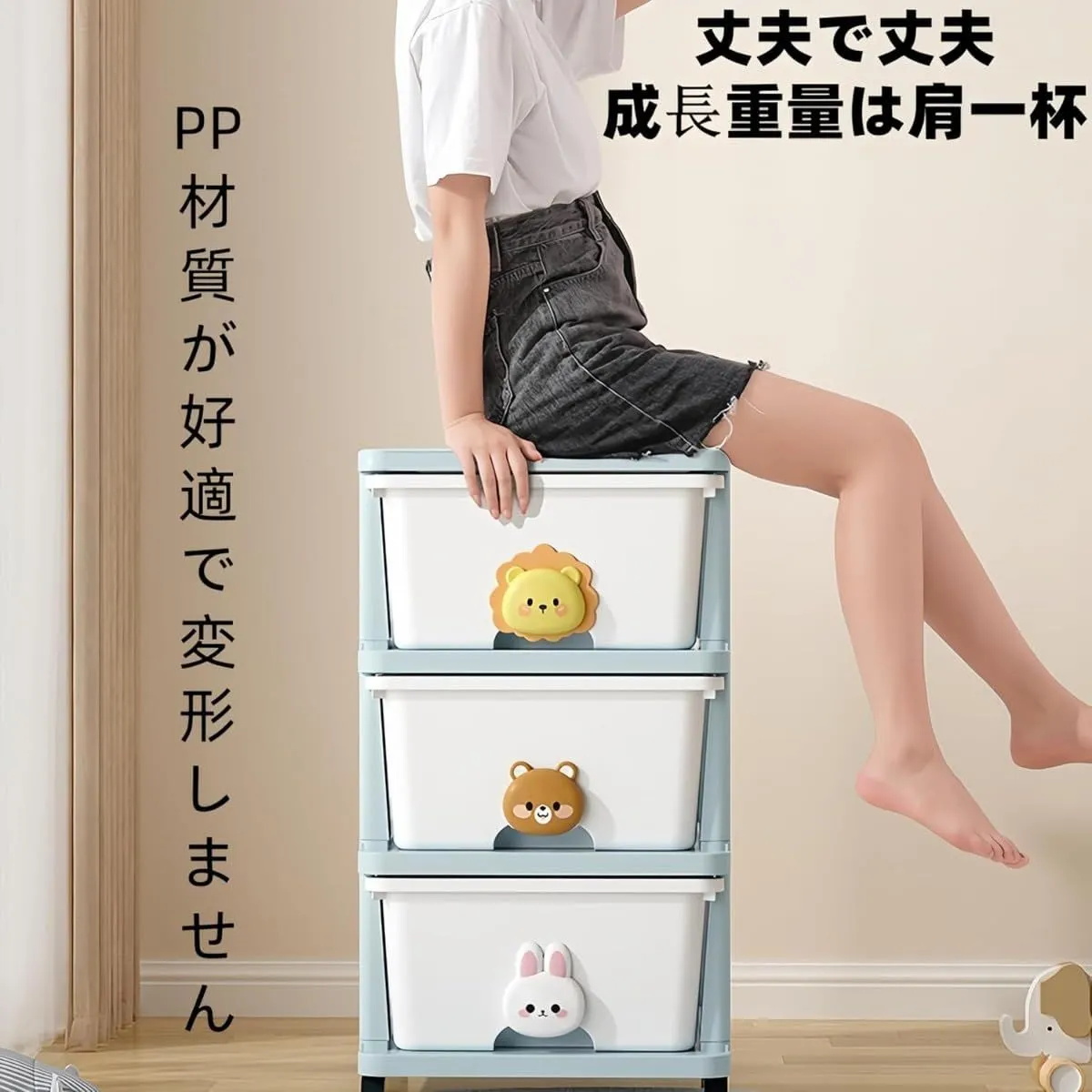漫画の動物柄: 1層目は可愛いパンダ、2層目は力強いライオン、3層目は元気なウサギ、4層目は可愛いクマ、5層目は賢いフクロウです。これらの動物柄は、収納ボックスの楽しみを増やすだけでなく、子供たちの想像力と創造力を刺激することができます。