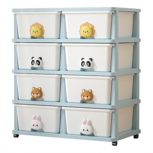 EZweekend キッズ多機能ロッキング収納チェスト引き出し式防塵キャスター付 おもちゃ/衣類収納 ベッドサイドテーブル兼用 多機能組立防塵キャスターベッドサイドテーブル (2列,4階)