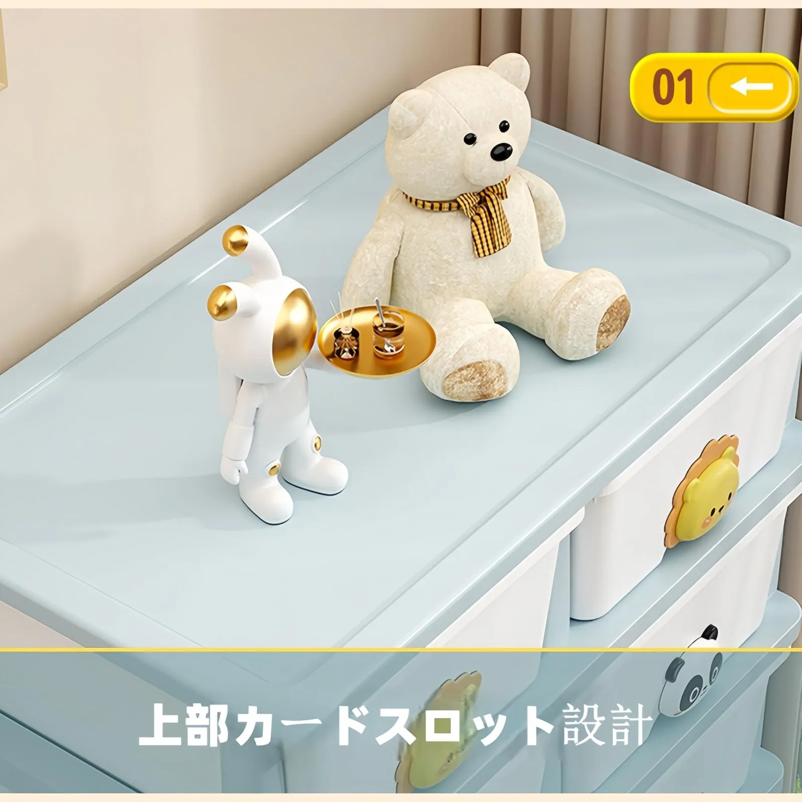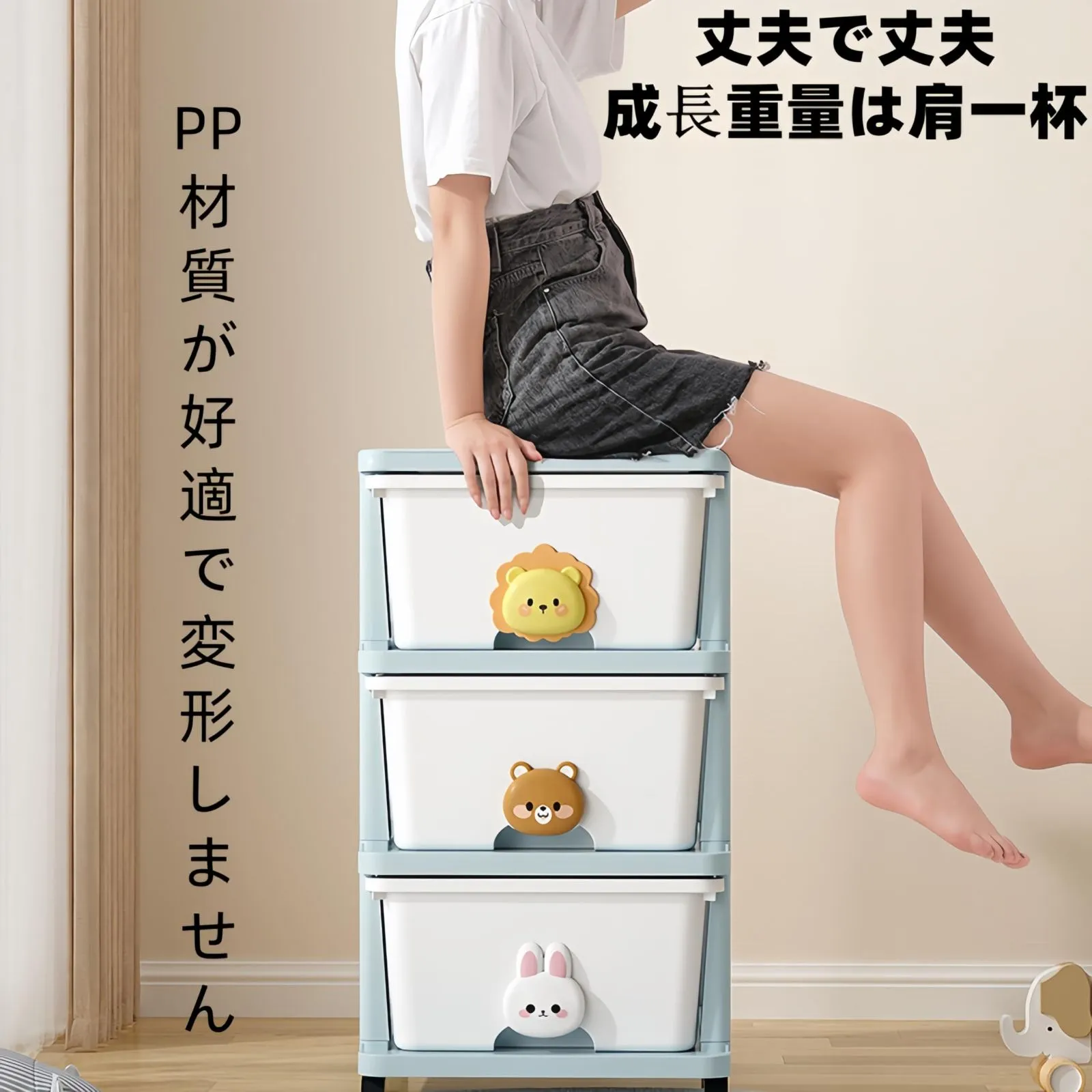 漫画の動物柄: 1層目は可愛いパンダ、2層目は力強いライオン、3層目は元気なウサギ、4層目は可愛いクマ、5層目は賢いフクロウです。これらの動物柄は、収納ボックスの楽しみを増やすだけでなく、子供たちの想像力と創造力を刺激することができます。