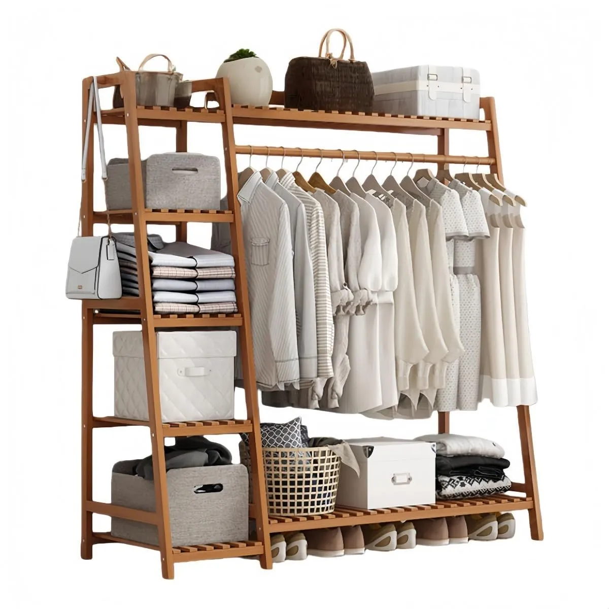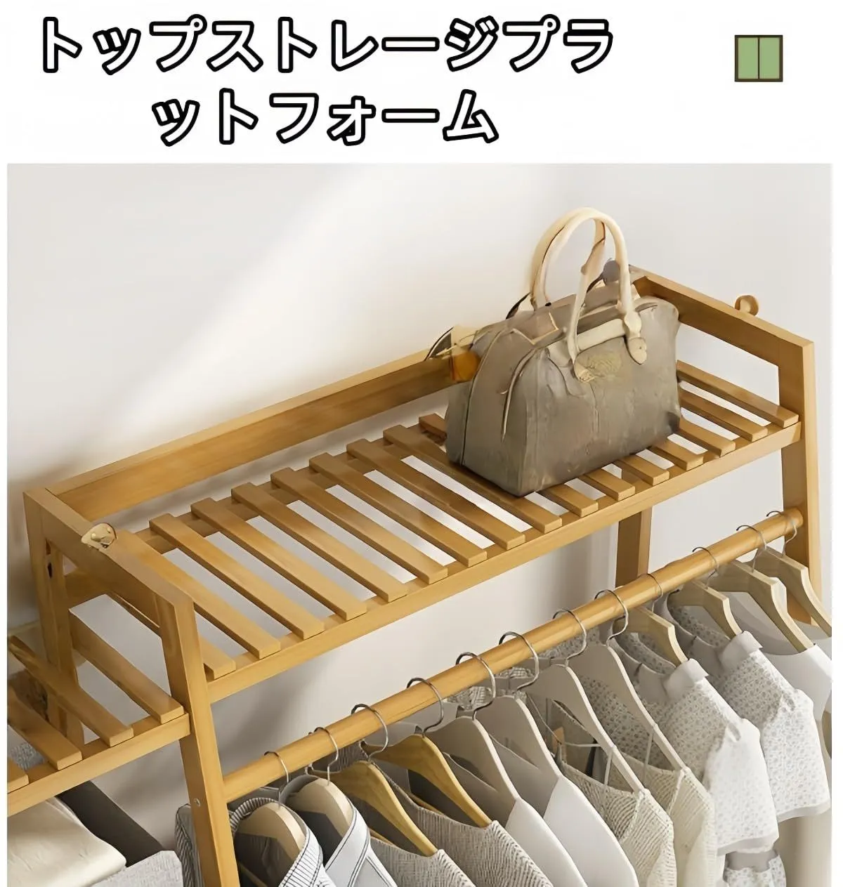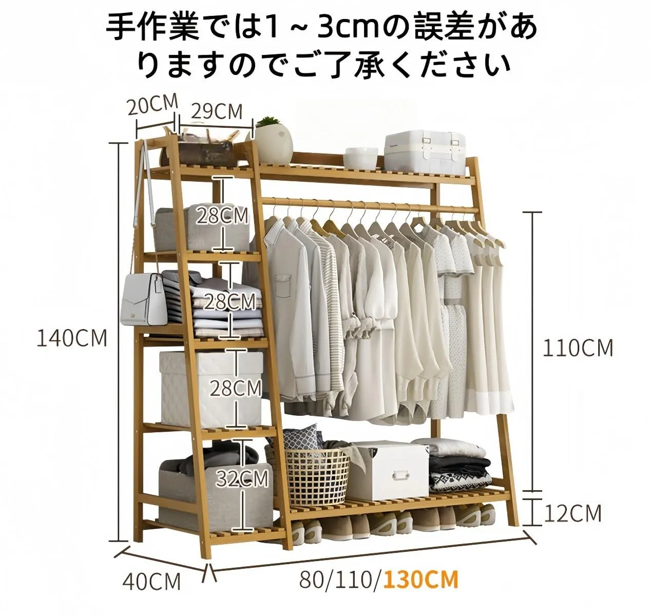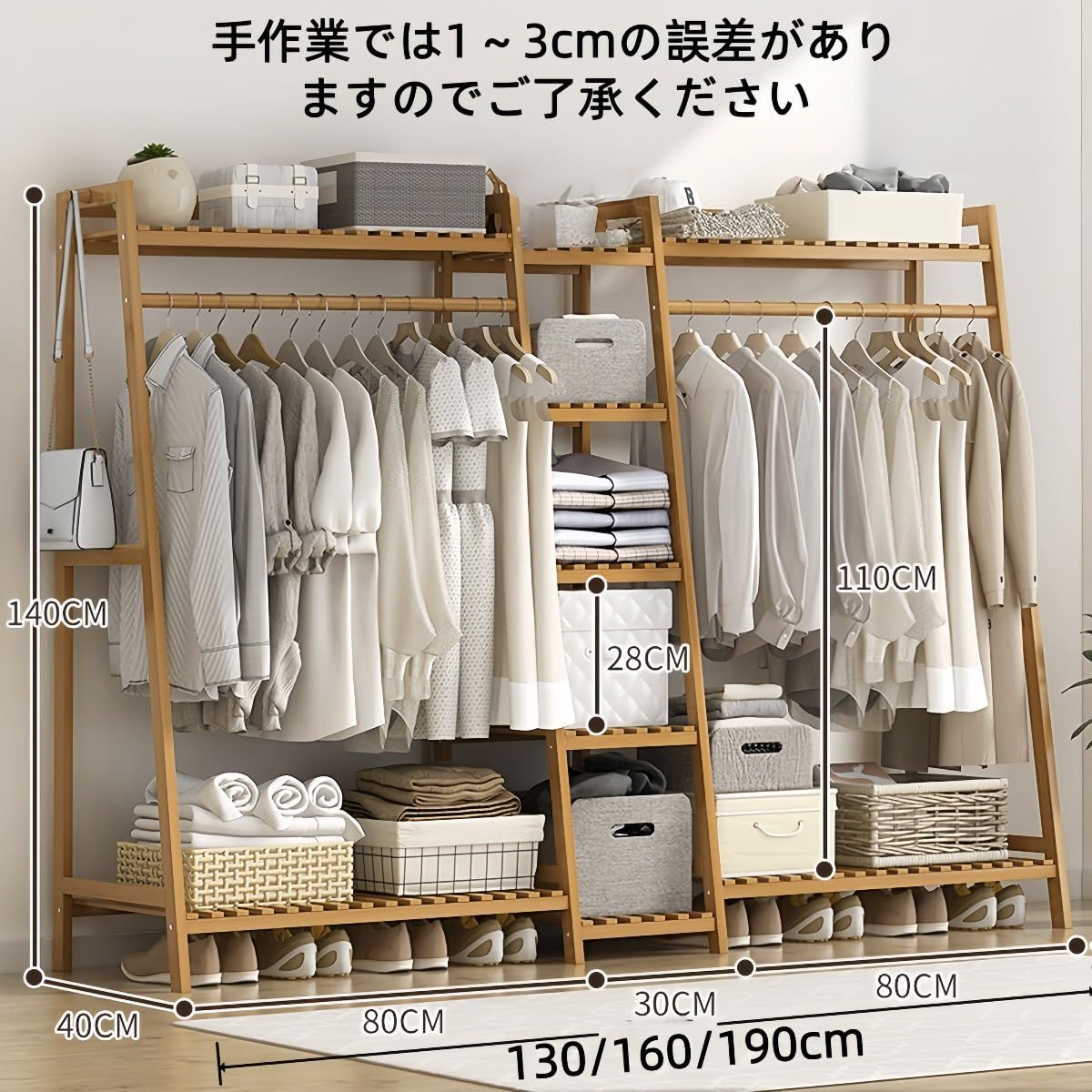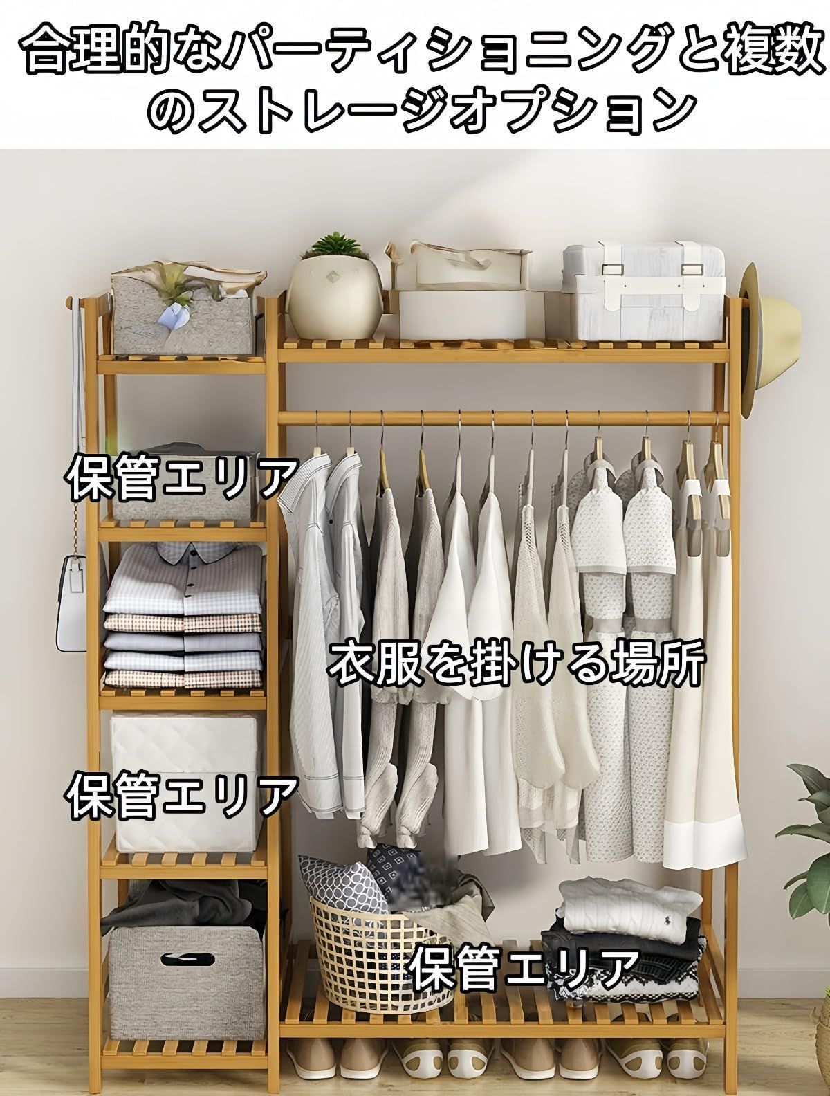 KUBERASハンガー丈夫修身木製洋服ラックおしゃれ大容量衣類ラック大多機能台形安定構造式耐久(130cm) (茶色,130cm)