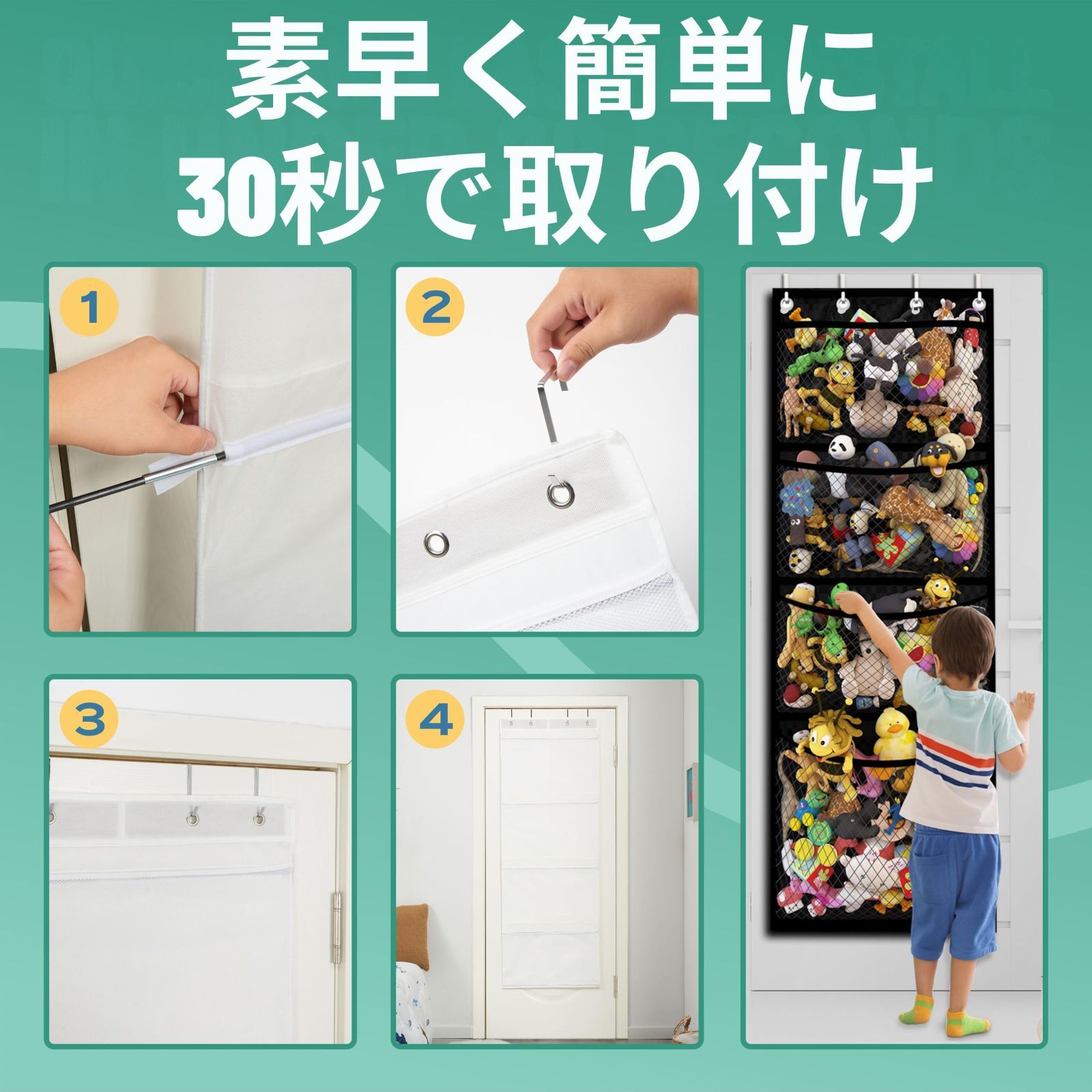 - ドア越しオーガナイザー スタッフィー ぬいぐるみ収納 ベビーアクセサリー おもちゃのぬいぐるみ収納/簡単な取り付け Honeyera(ハネラ) 吊り下げ式収納ポケット付き (黒)