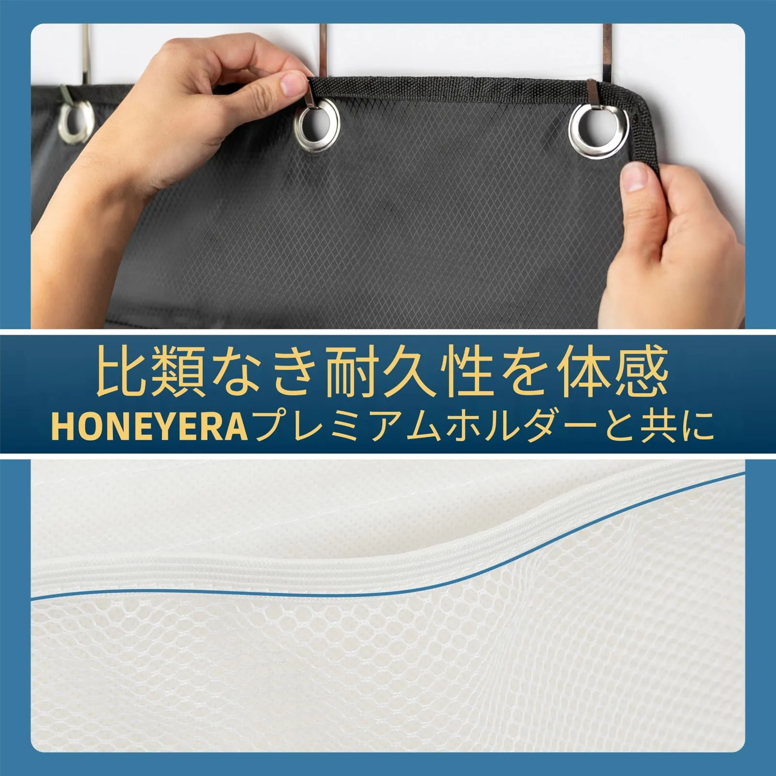Honeyeraのドア掛けオーガナイザーで、ご自宅のスペースを賢く効率的に活用しましょう。 耐久性があり、ネジや釘を使わずに簡単に設置でき、平均的なサイズのドアにフィットします。 ぬいぐるみの収納オーガナイザーやその他の柔らかい物品として理想的です。メッシュポケットは、ドアの後ろの余分なスペースを利用しながら、アイテムを新鮮で清潔に保ちます。 Honeyeraの各ドアハンギングオーガナイザーには、ドア収納オーガナイザーをしっかりと固定する4つの頑丈な金属製フックが付いています。 折りたたみ可能なバッグは、使用しないときは簡単に収納でき、4つのメッシュポケットコンパートメントにより、さまざまなサイズのアイテムに柔軟にフィットします。 ニュートラルなブラックカラーは、どんな部屋の装飾にもマッチします。 当社のドアバックストレージユニットは、お客様の期待を上回ることを確信しています。 自信を持って購入し、お子様のぬいぐるみにふさわしい家を手に入れましょう。 ビーンバッグぬいぐるみ収納など、おもちゃが消耗したり変形したりする他の製品とは異なり、貴重な床面積を多く占めることは言うまでもなく、このユニットは複数のタイプのアイテムに使用できます。 ベビーアクセサリーの保管、ドア越しのバスルームオーガナイザーとして、または一般的な吊り下げ収納として使用する場合でも、どれだけスペースを節約し、アイテムにアクセスできるかに喜ぶでしょう。 ご自宅を整理するユニークな方法を探している方や、小さなリビングスペースをお持ちの方は、ドア掛けハンガーは新築祝い、ベビーシャワーギフト、ご自宅の収納整理に実用的に加えるのに最適です。