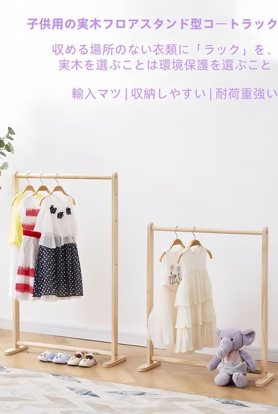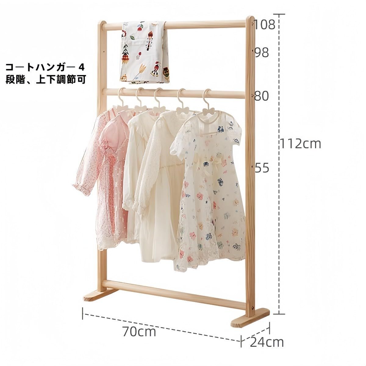 衣類収納に最適 組み立て簡単 省スペース 丈夫で長持ち 多機能デザイン 収納棚付き (70幅の子供用パイロン) 子供部屋用 JORERAORMES木製ハンガーラック