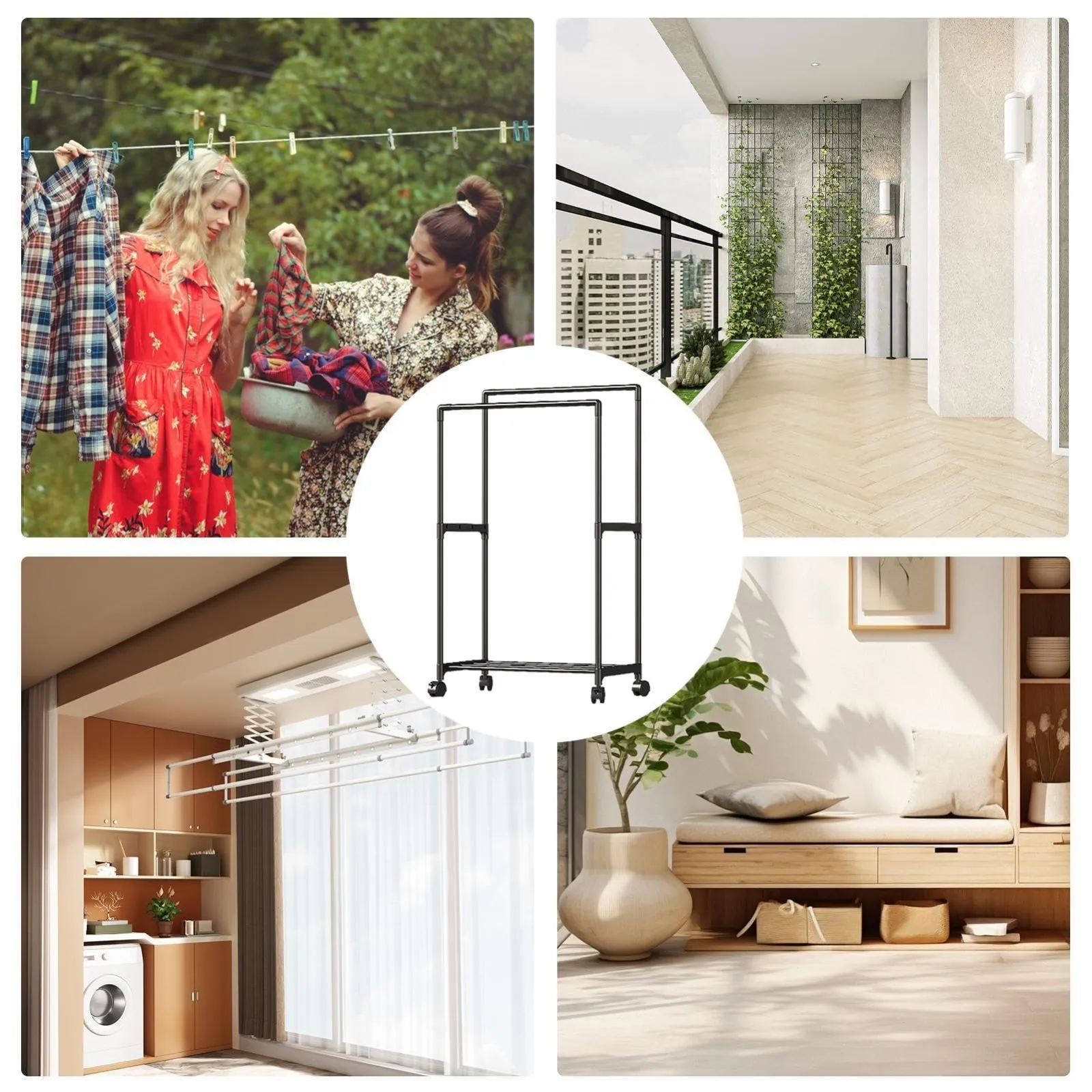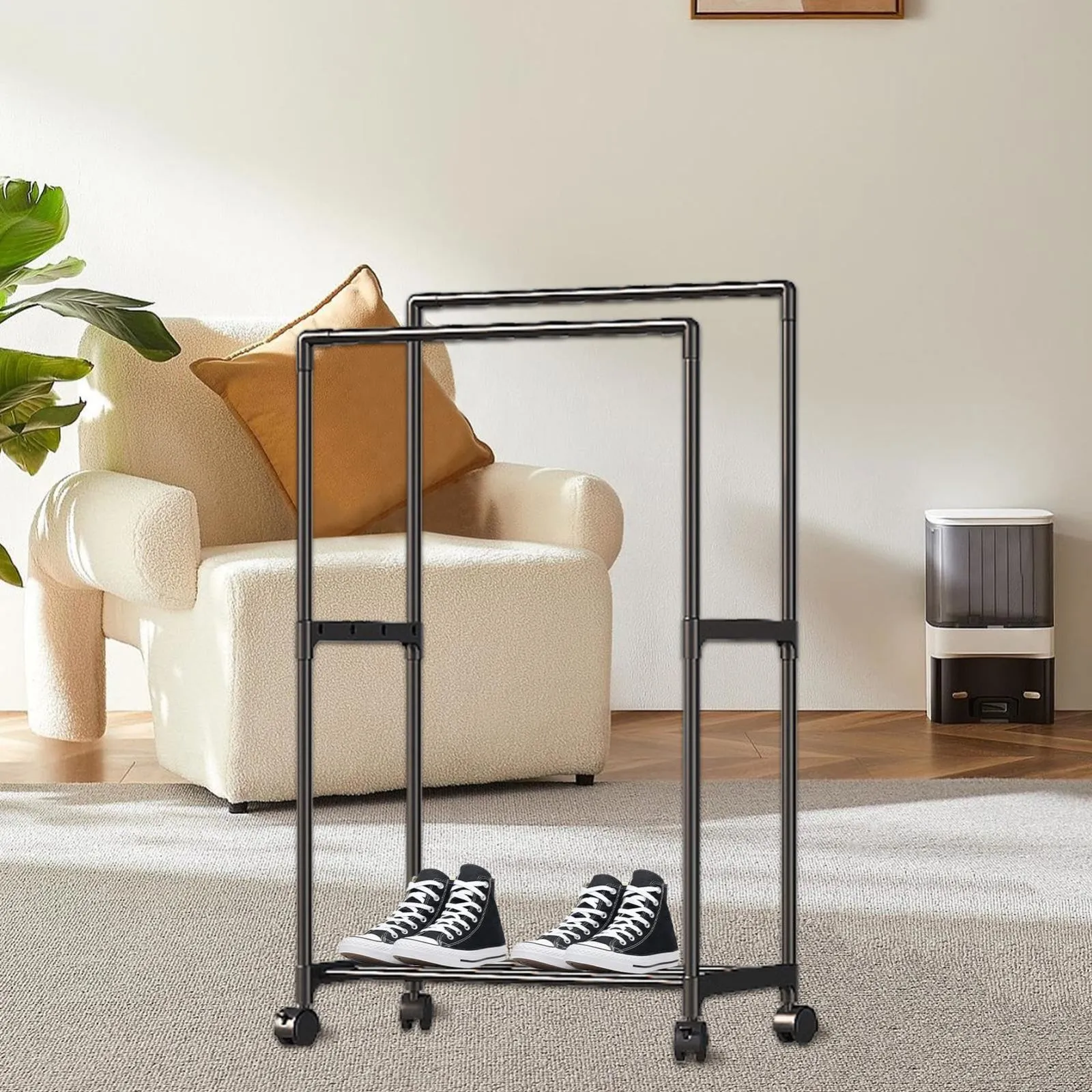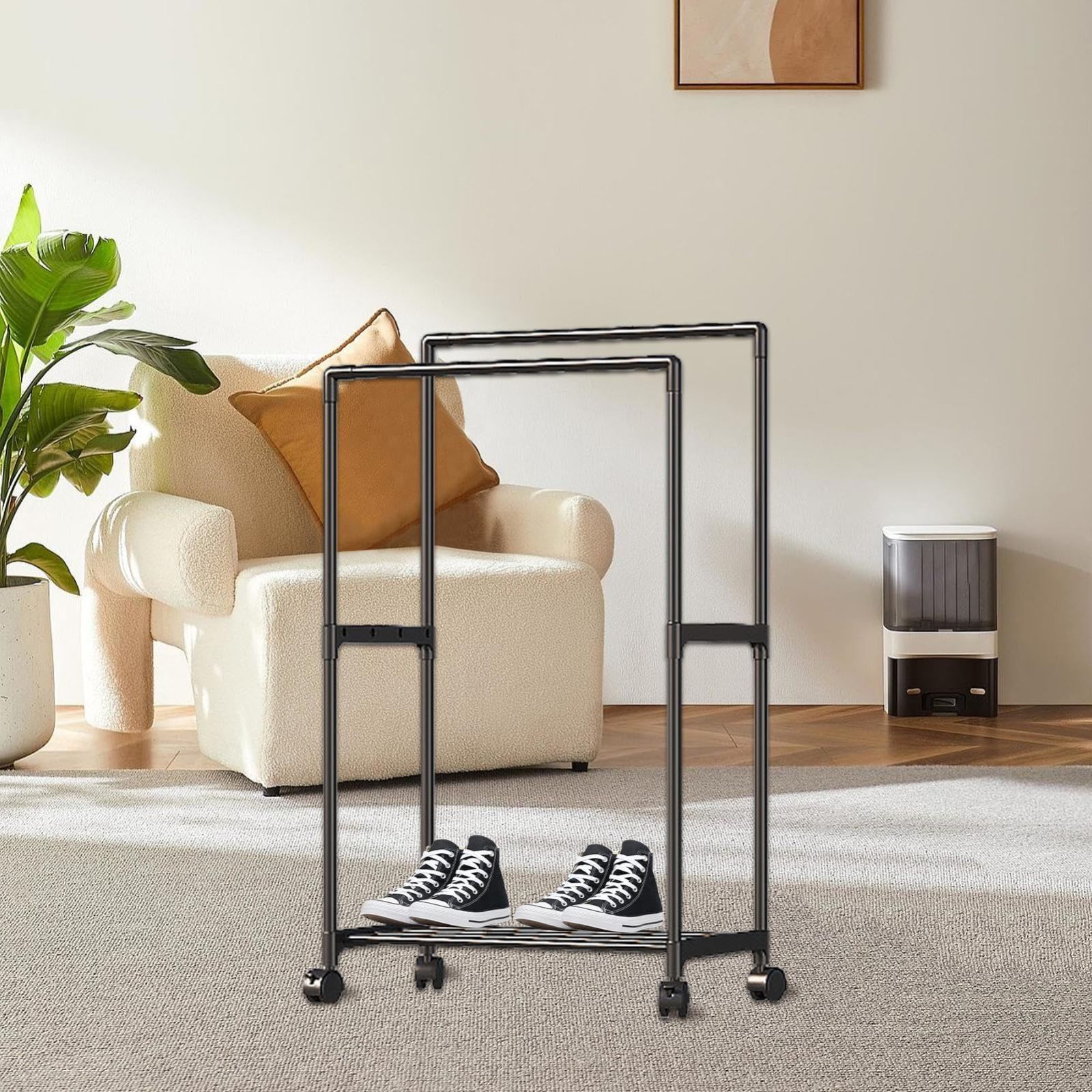 移動に便利:この衣類ラックは下部にある可動式ホイールでいつでも簡単に移動できるため、衣類に簡単にアクセスでき、スペース管理も楽になります。