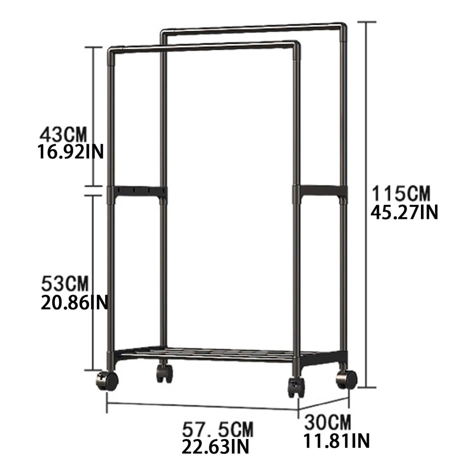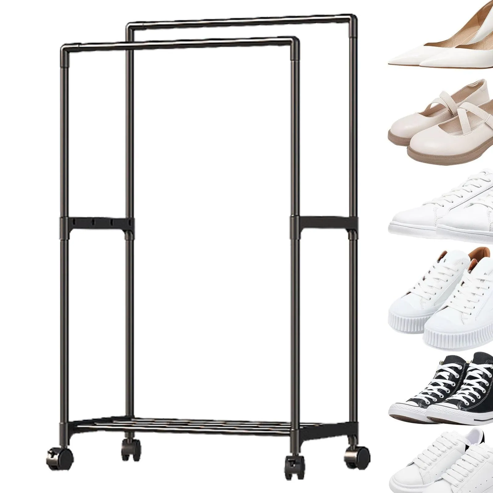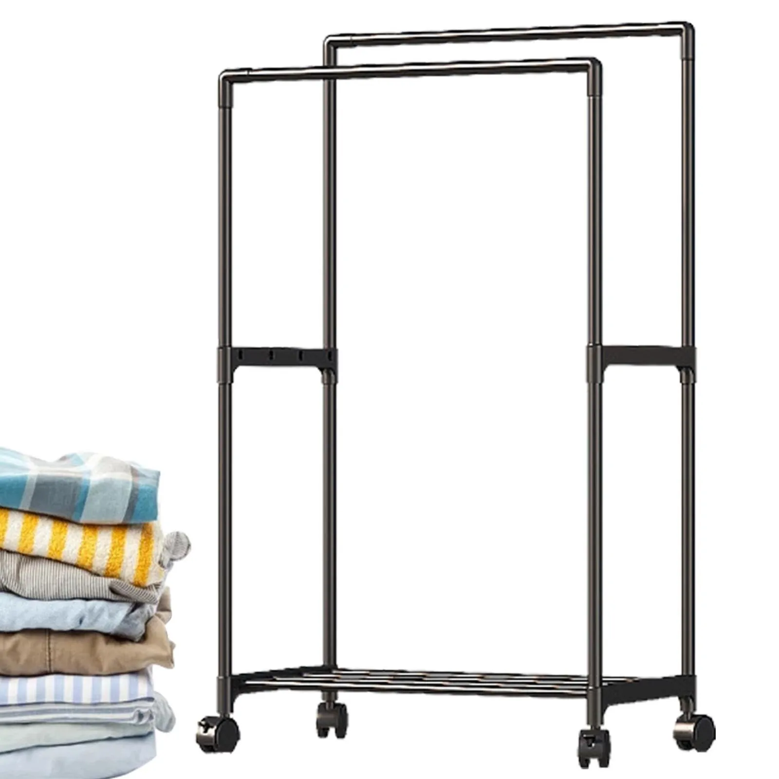 車輪付きダブルロッド衣類ラック - | 頑丈な衣類ラック、衣類ラック 衣類ハンガーラック、クローゼットオーガナイザー、コート、シャツ、ドレスの収納