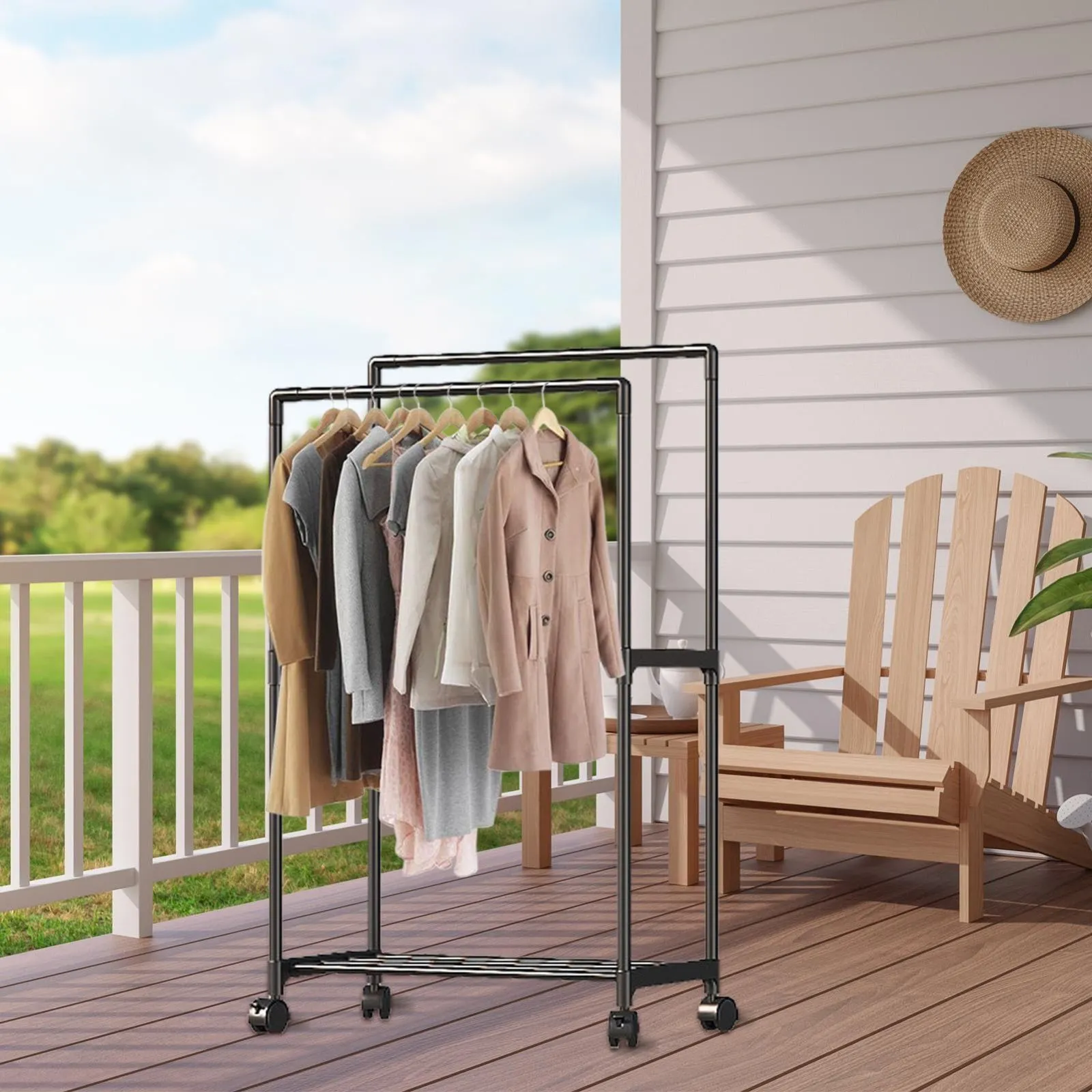 十分な収納力: ユニークな2列デザインの衣類ラックは、衣服を競合させることなく保管および整理できる十分な容量を提供し、クローゼットのスペースを最大限に活用し、衣服にアクセスできるようにするための賢い選択となります。
