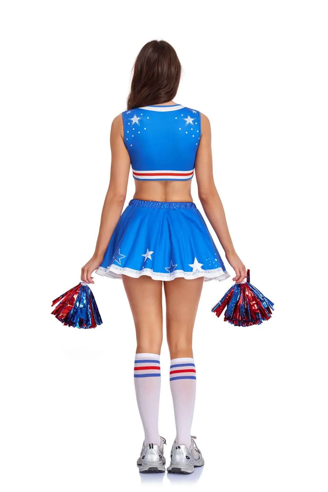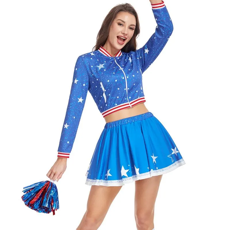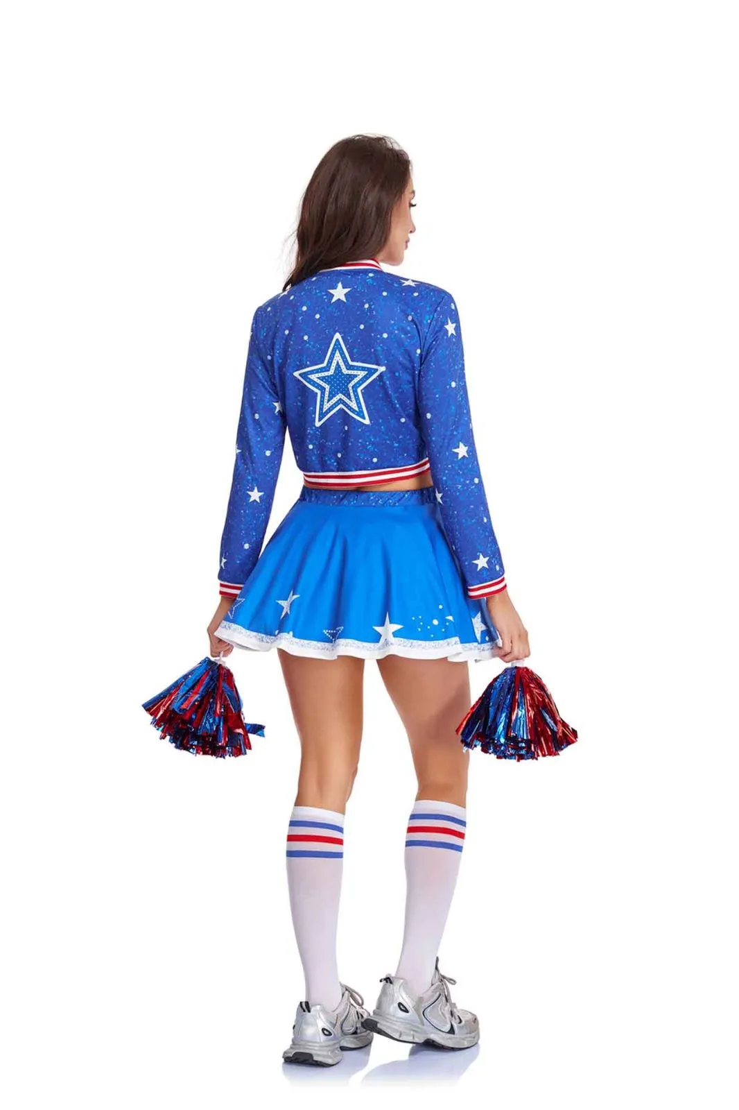 ブルー チアガール コスチューム レディース 大人用 チアリーダー キャプテン風 デザイン ハロウィン 仮装 イベント 衣装 ステージ パフォーマンス ダンス 応援団 フットボール レースクイーン風 セクシー かわいい コスプレ 舞台衣装 撮影用