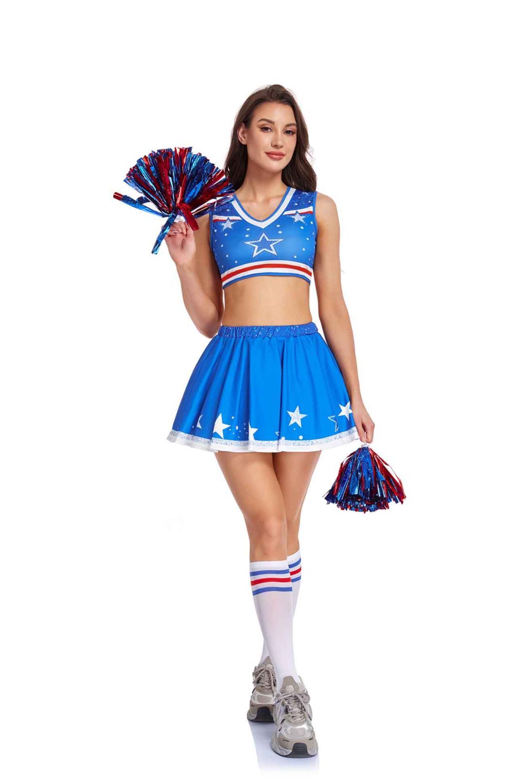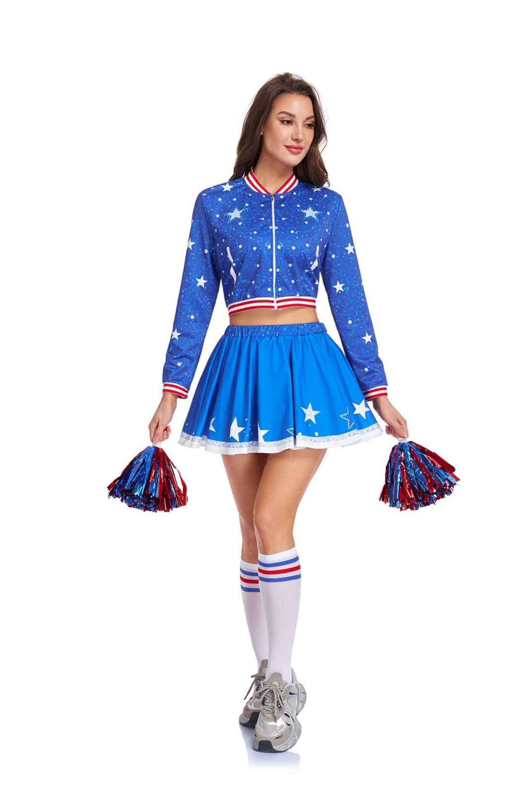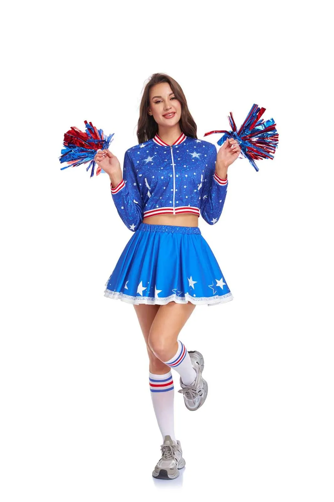 ブルー チアガール コスチューム レディース 大人用 チアリーダー キャプテン風 デザイン ハロウィン 仮装 イベント 衣装 ステージ パフォーマンス ダンス 応援団 フットボール レースクイーン風 セクシー かわいい コスプレ 舞台衣装 撮影用