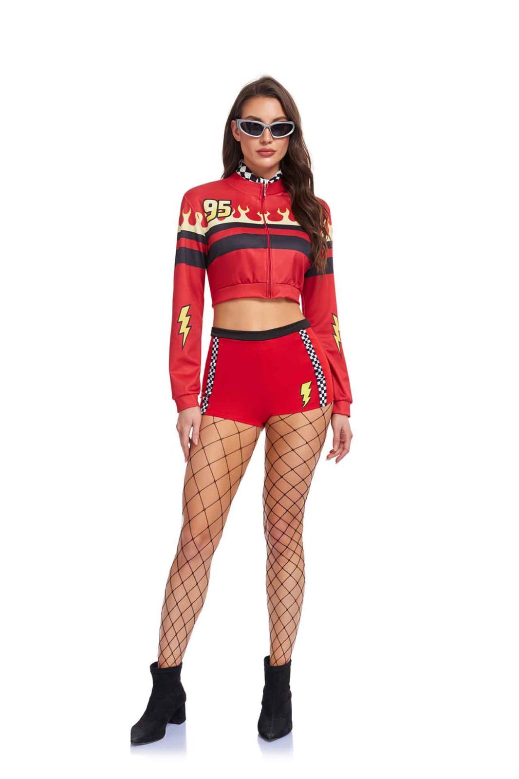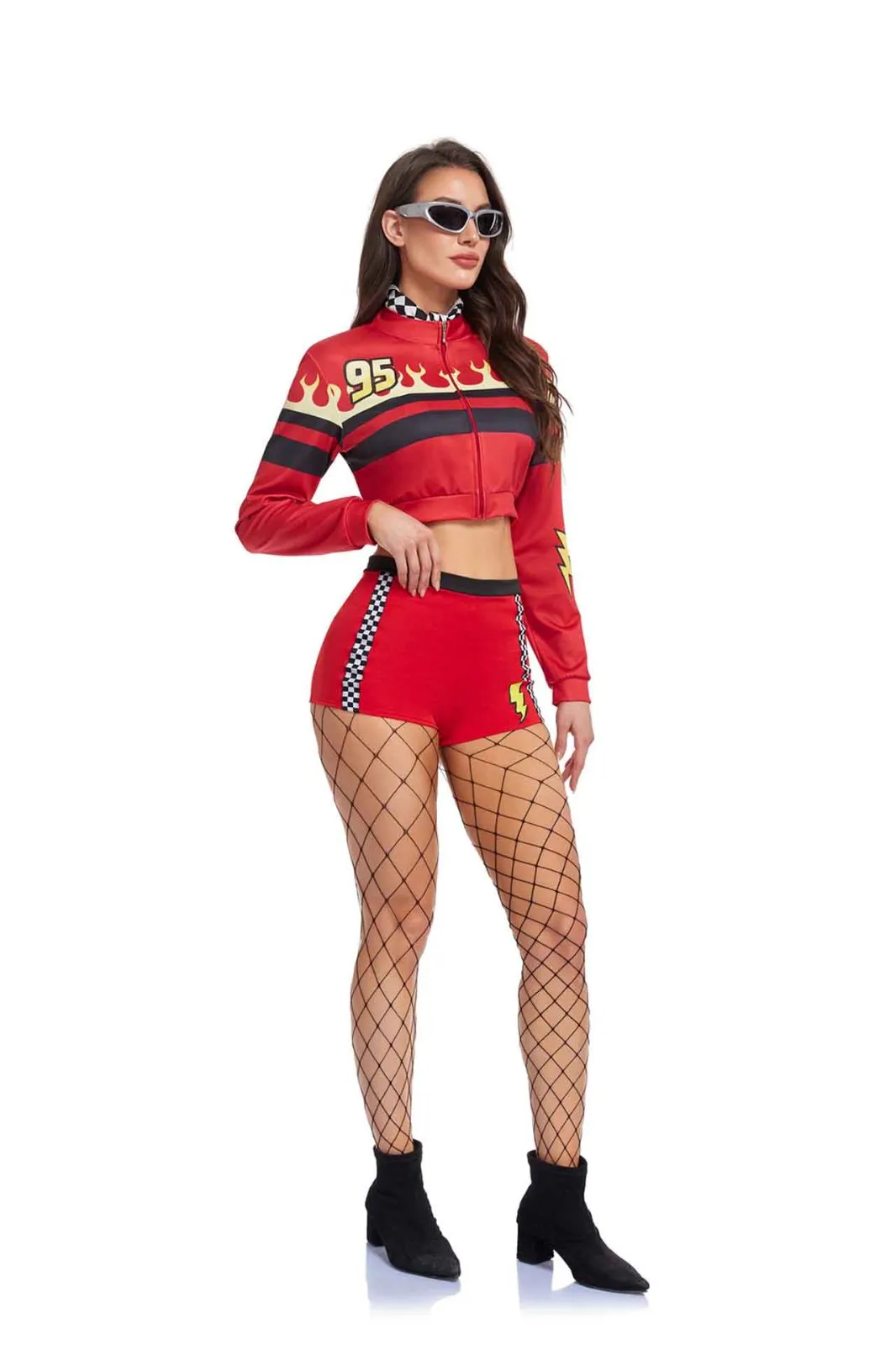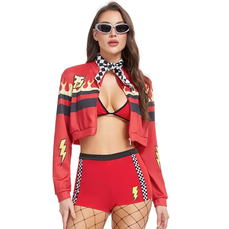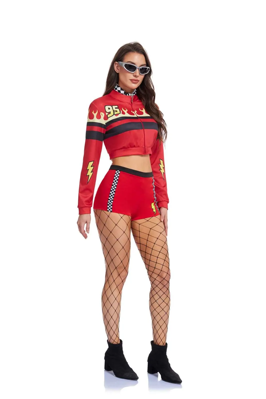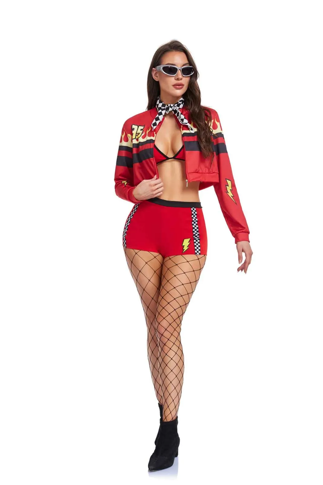 ハロウィン コスチューム レディース レッド レーシングスーツ風 チアガール 衣装 レースクイーン レーサー デザイン 大人用 セクシー 仮装 カーニバル イベント 展示会 ステージ パフォーマンス ダンス ショーモデル 舞台衣装 撮影用