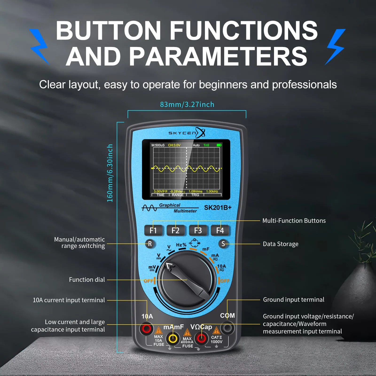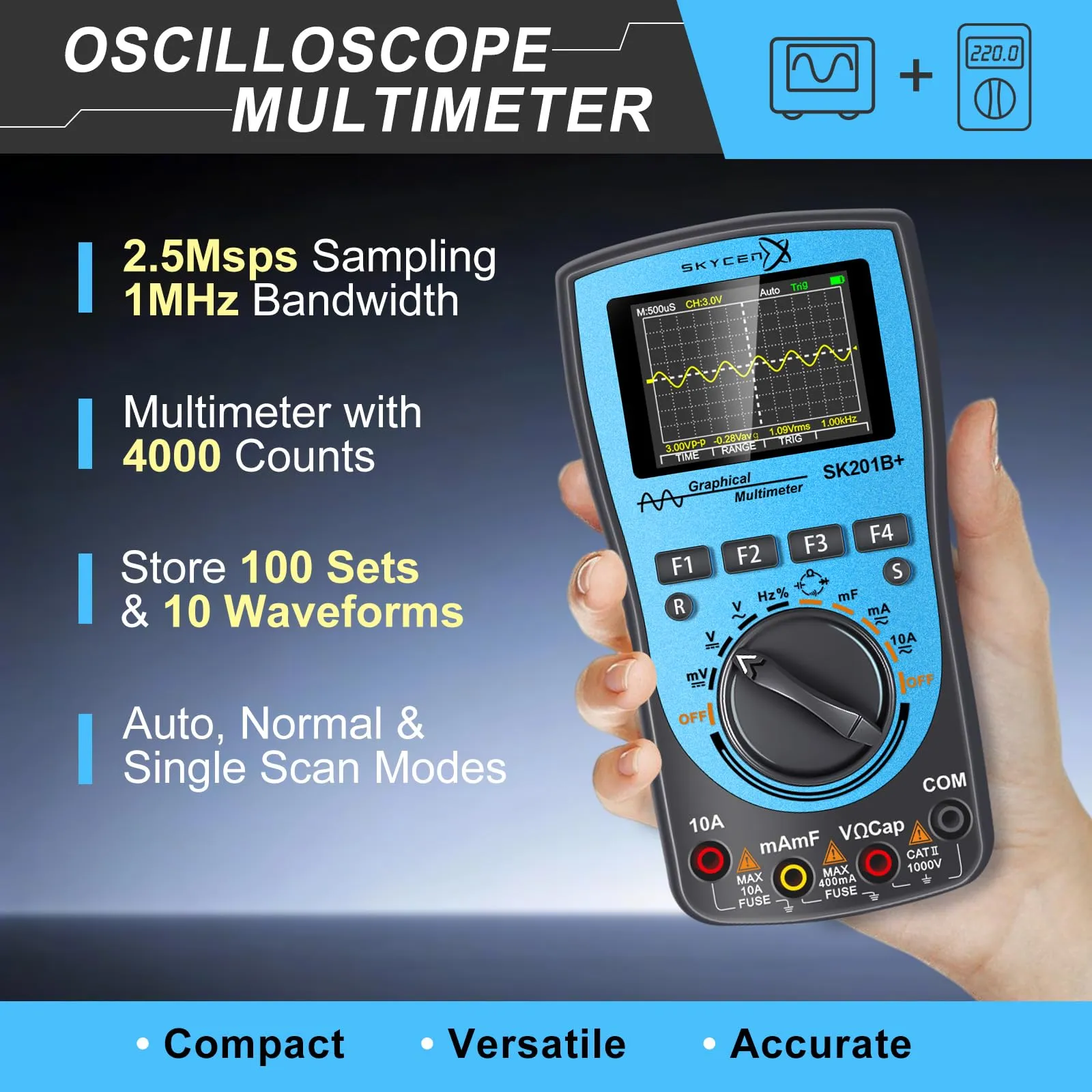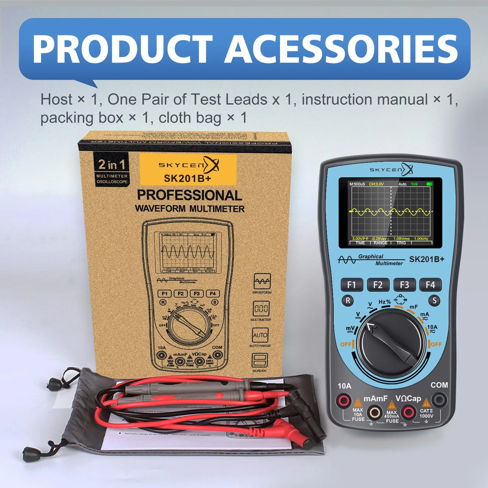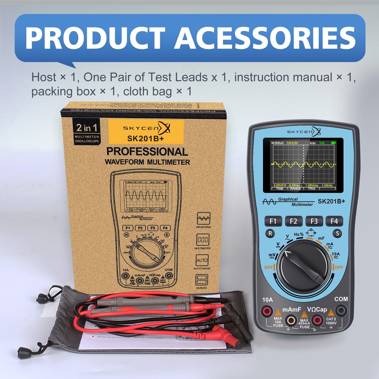 新品 SK201B+ インテリジェント グラフィカル デジタル オシロスコープ マルチメーター 2 in 1 SKYCENX 2.4インチカラースクリーン 1MHz 帯域幅 2.5Msps サンプリングレート DIYおよび電子テスト用