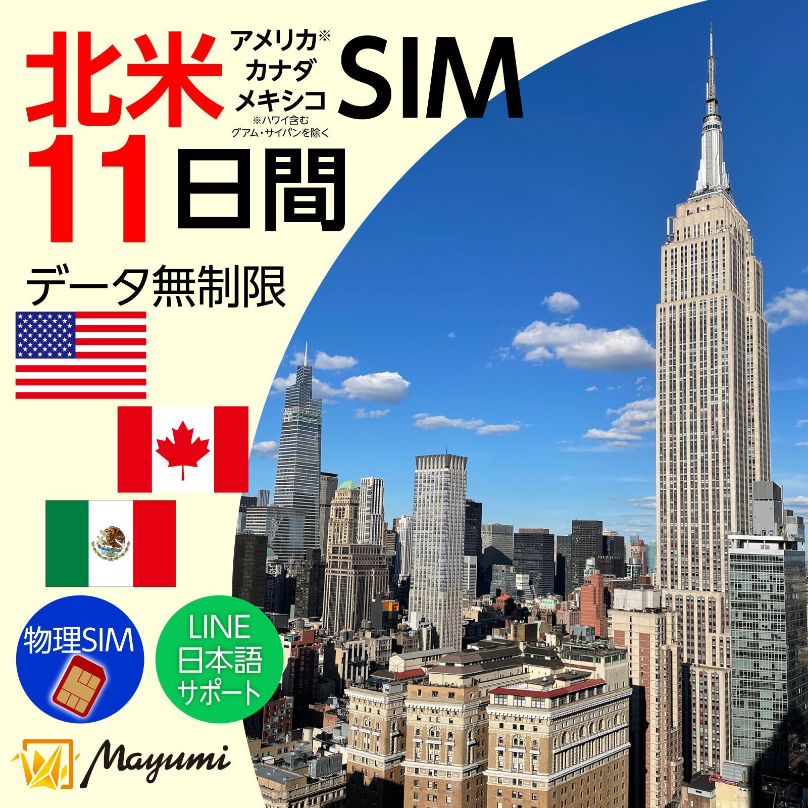【アメリカ ハワイ カナダ メキシコ 無制限 物理SIM チャージ可能】北美 11日間完全無制限データ通信専用(電話番号なし)4G 5G 高速データ通信 物理SIM プリペイドSIM 留学 海外出張 海外旅行 ワーホリ 短期留学 使い放題 物理SIM