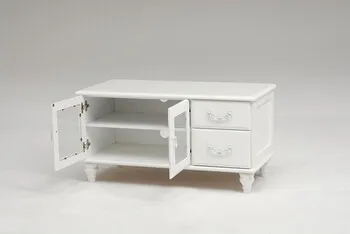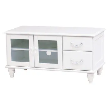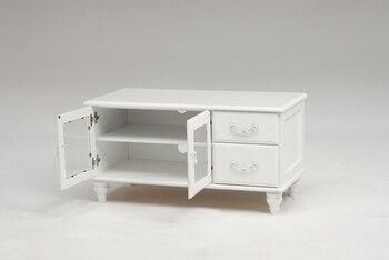 上品な白い取っ手のついた、シンプルながらも上質さを感じさせるテレビ台。
