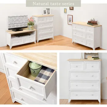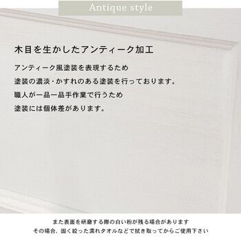 シャビーホワイトの本体にアンティーク調ナチュラルな天板が映える、シンプルチェスト。