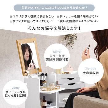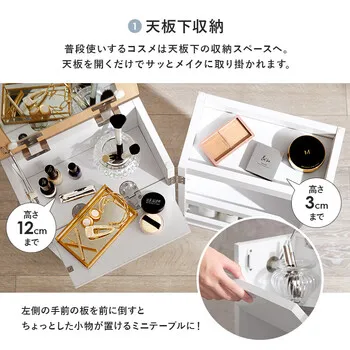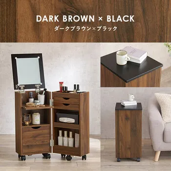 メイクの時だけサッと広げて、普段はコンパクトなサイズ感なのでリビングにも置きやすい大容量収納コスメワゴン。