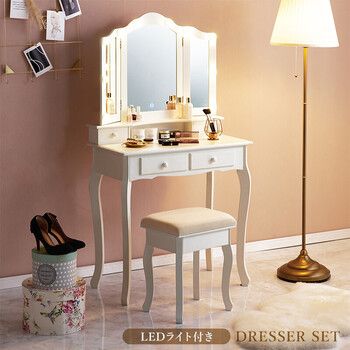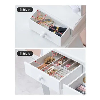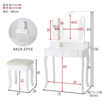 ■本体サイズ:ドレッサー:(約)幅75×奥行42×高さ138cm、スツール:(約)幅37×奥行28×高さ45cm