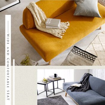 空間に圧迫感を与えないローデザインの二人掛けソファ。