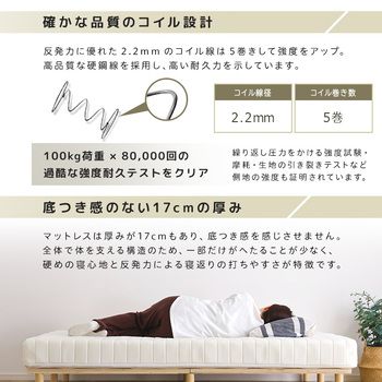 コイル同士が連結した構造のボンネルコイルにより、身体を面で支え、沈み込みすぎず安心した寝心地を実現します。