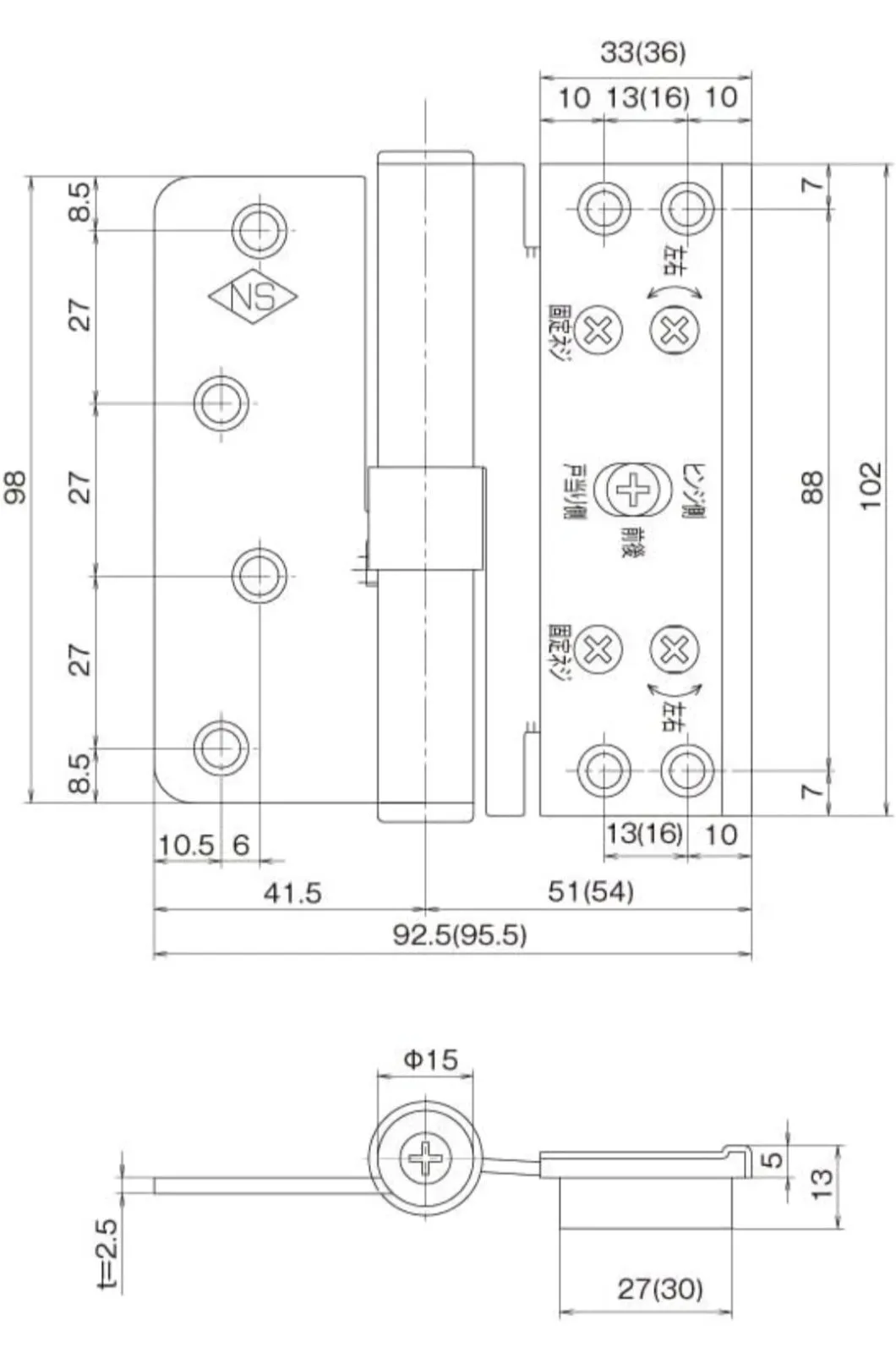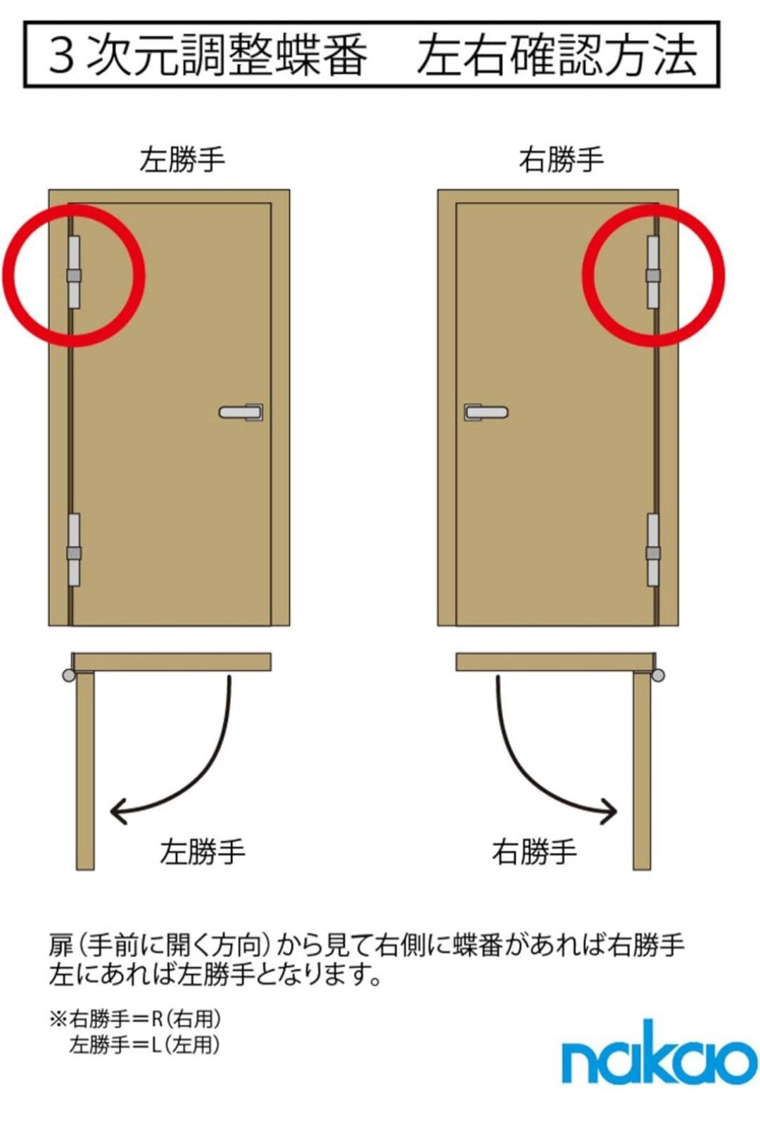 NAKAO 【左用】中尾製作所 3次元調整蝶番 NSO-3D ドアヒンジ 上下兼用 左(L)用 ゴールド GD 対応扉厚:33mm/36mm (33mm)