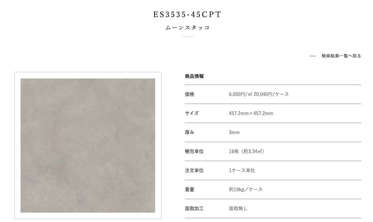 【商品の説明】 ブランド、メーカー:川島織物セルコン 型番:ES3535-45 定価:20,040円税別/ケース サイズ:457.2×457.2×3mm(3.34平米) ※こちらは4ケースでの出品です。 #川島織物セルコン #床タイル #ムーンスタッコ #ES3535-45 #フロアタイル #左官調 #コンクリート調 #モダンインテリア #店舗内装 #圓屋 #圓屋アウトレット店