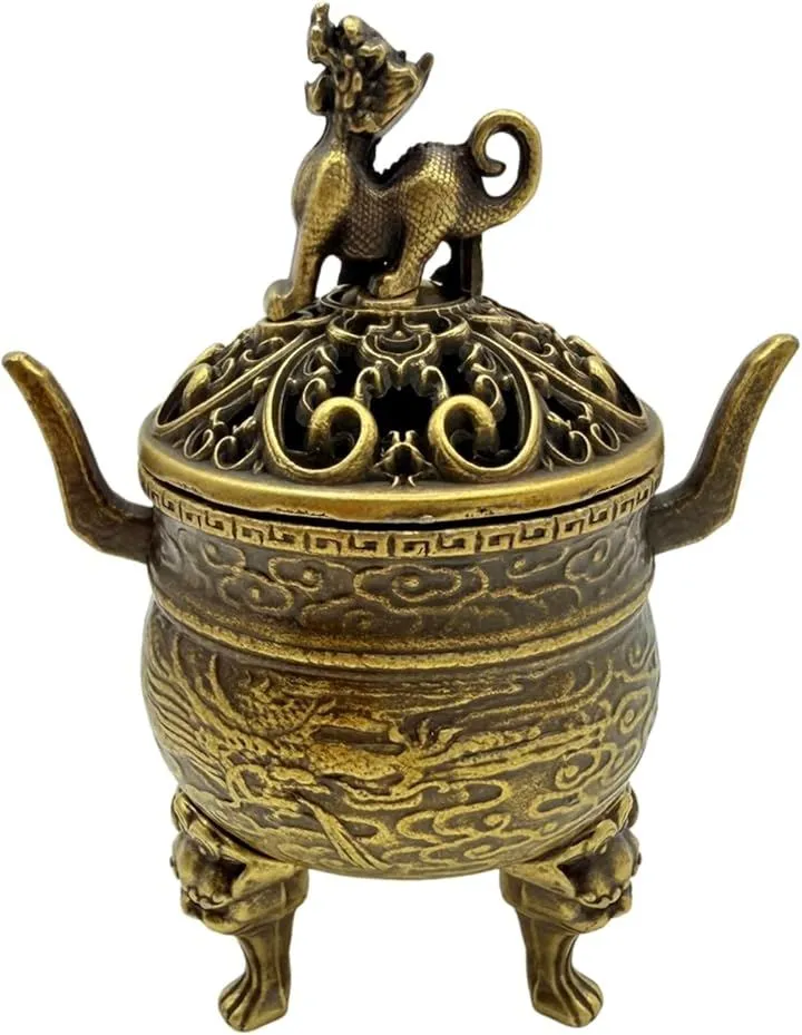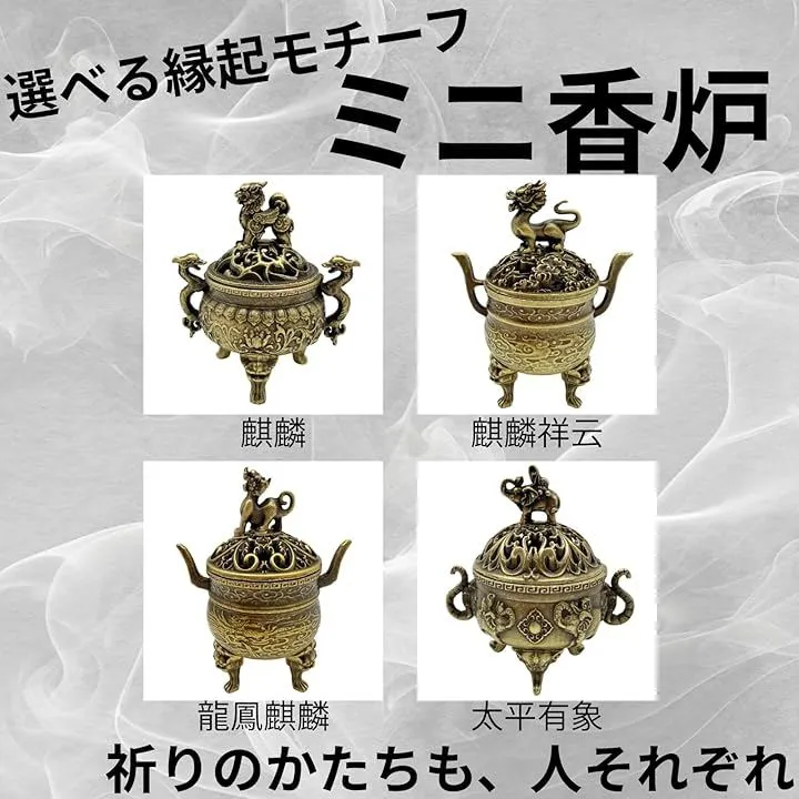 AhhYouMe(アーユーミー) お香立て ミニ 線香立て コーン ヨガ 香炉 瞑想 浄化 蓋付き (龍鳳麒麟, ワンサイズ)