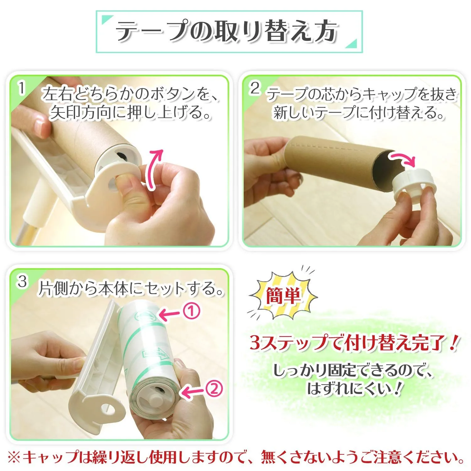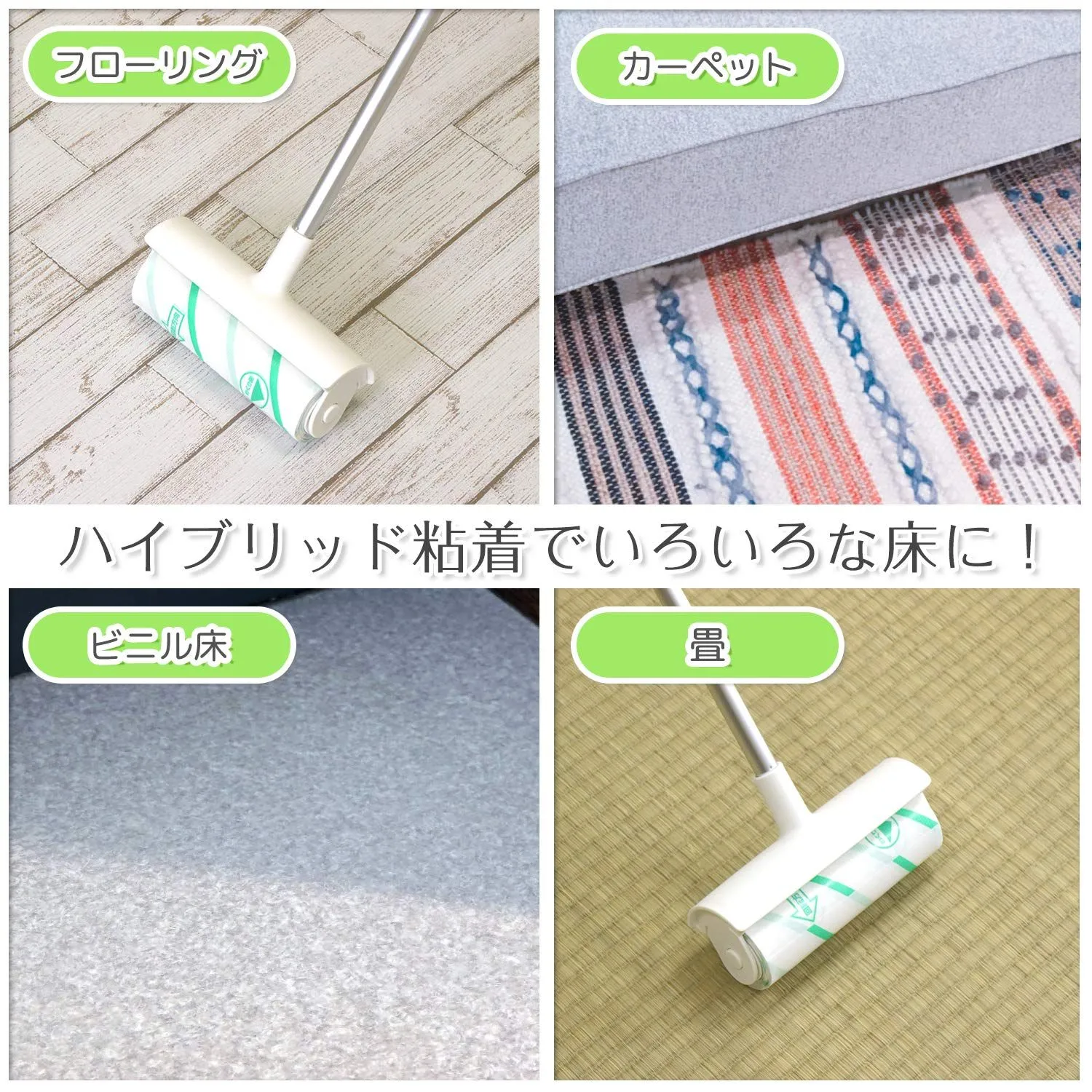 ●ハイブリッド粘着シートを採用し、カーペットにもフローリングにもどちらにも使うことができます。