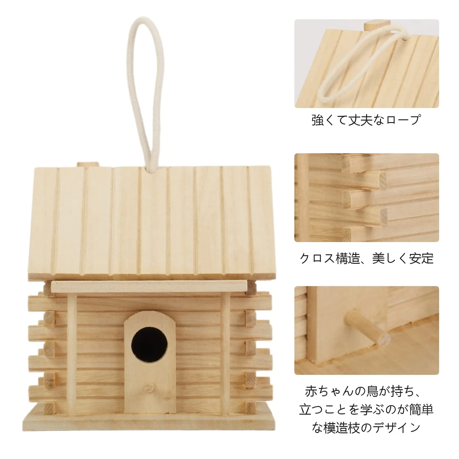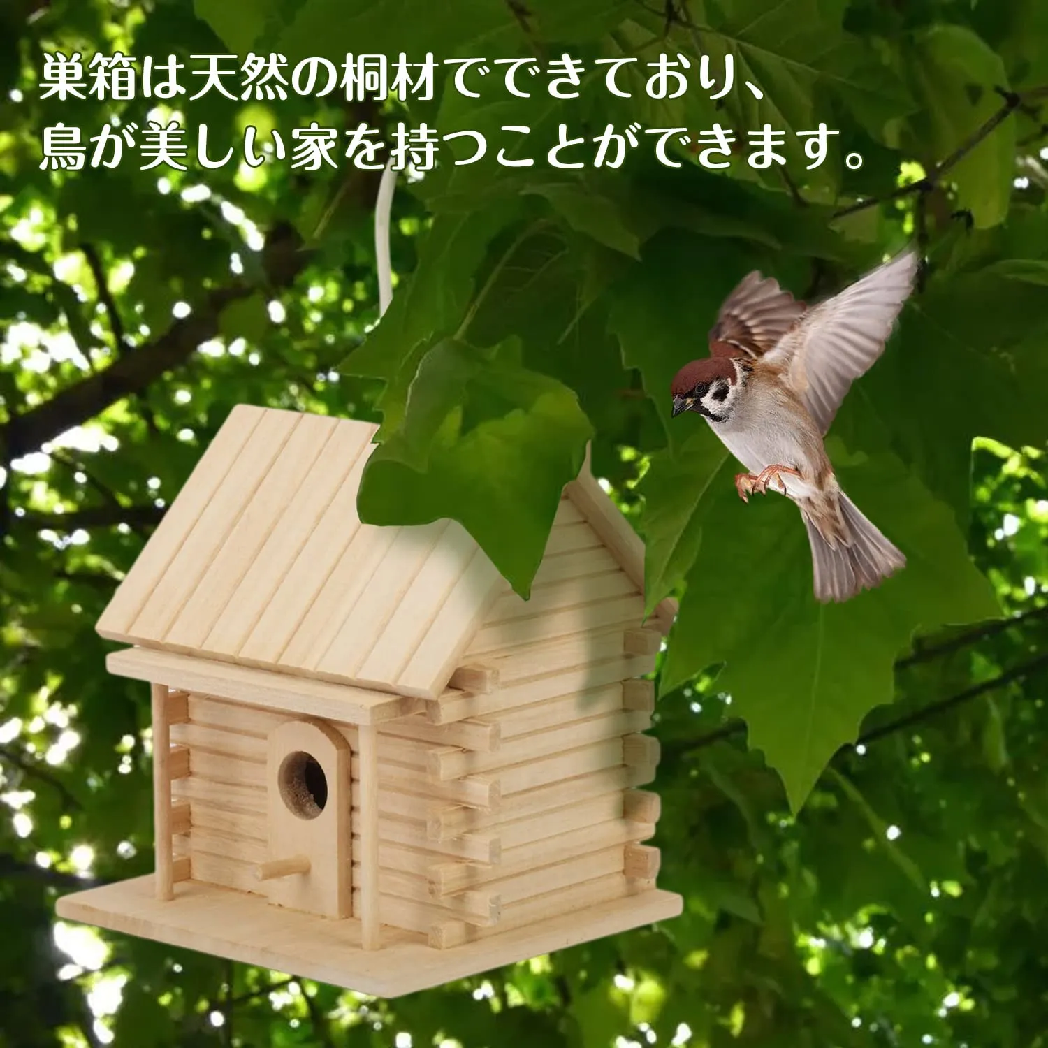 【天然木無垢材】鳥の巣箱は高品質の木材で作られている、割れにくく、はっきりと見える木の質感、美しく寛大、強力な耐食性、独特の木質の香りが鳥に一種の樹木を持たせることができます自然の親密さ。