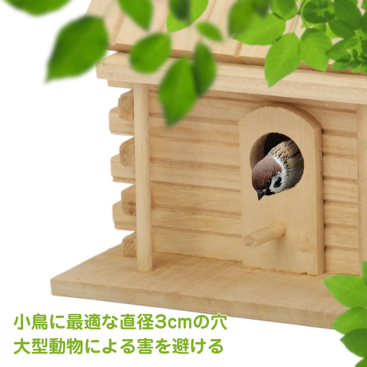 aleawol 野鳥用巣箱 完成品 鳥の巣箱 天然木材 ハンギングバードハウス 屋外 巣箱 野鳥への餌やり、親子体験、家の装飾に適用する(サイズ17x16x18cm/穴の直径3cm)