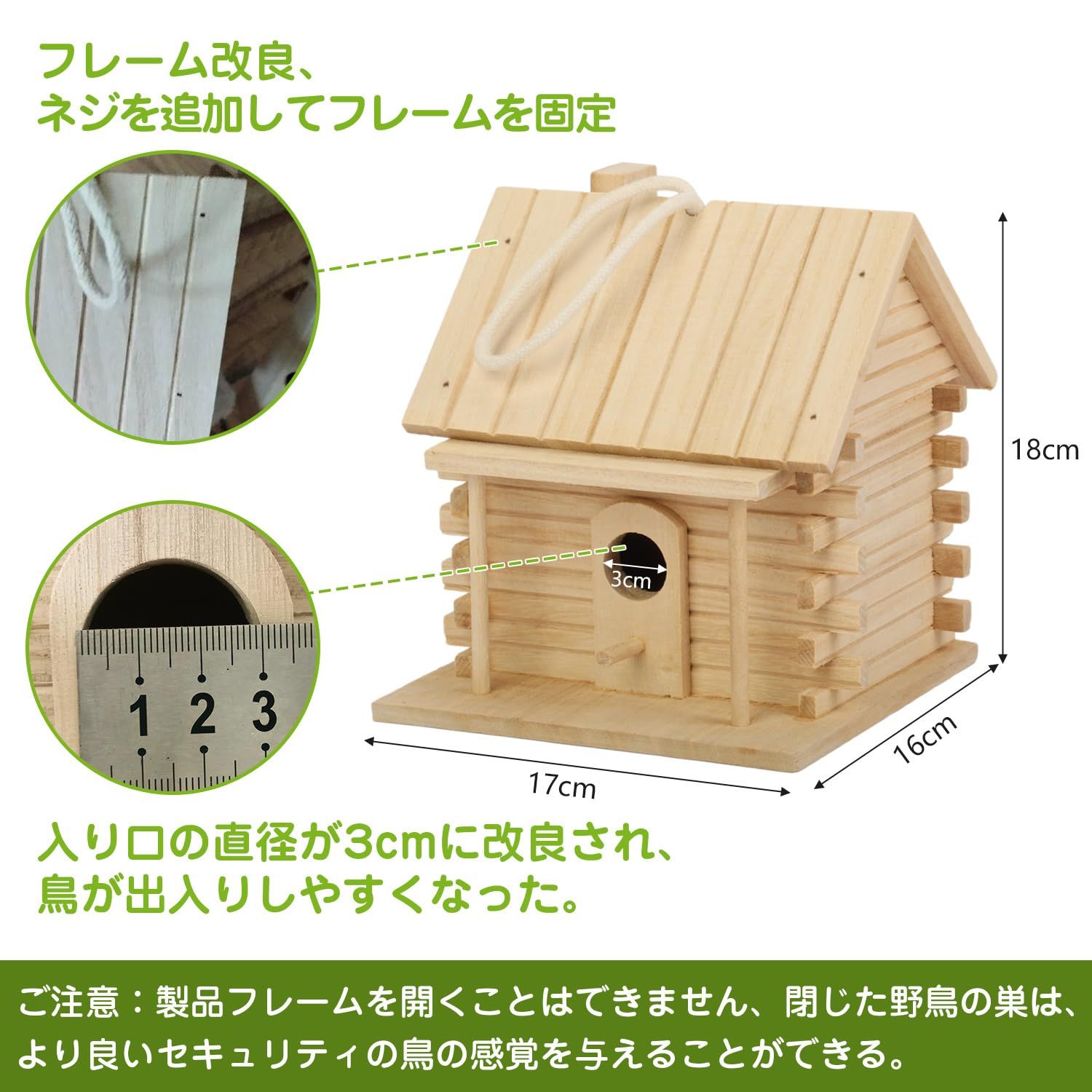 屋外 ハンギングバードハウス 天然木材 巣箱 鳥の巣箱 完成品 野鳥への餌やり、親子体験、家の装飾に適用する(サイズ17x16x18cm/穴の直径3cm) 野鳥用巣箱 aleawol