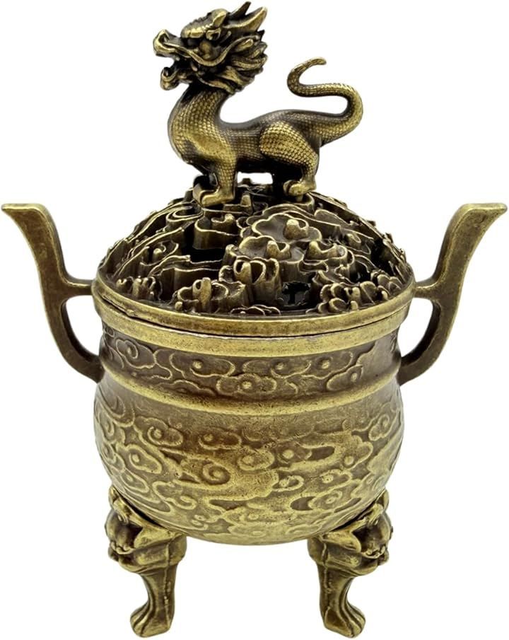 AhhYouMe(アーユーミー) お香立て ミニ 線香立て コーン ヨガ 香炉 瞑想 浄化 蓋付き (麒麟祥云, ワンサイズ)