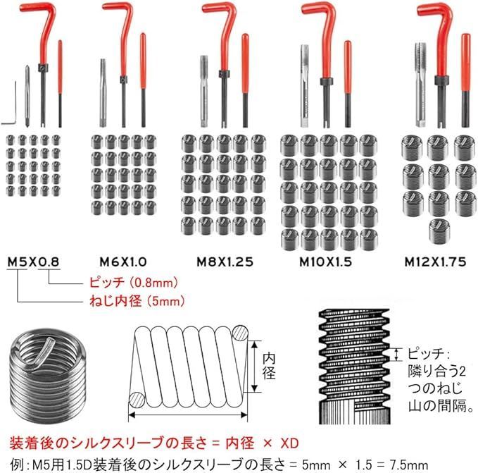 ネジ穴補修 キット ネジ穴再生 修理キット M6 M8 M10 ネジ穴復活 補修 リコイル ヘリサート キット バイク 車 グッズ 道具 修理道具 整備道具 コンパクト ギフト 贈り物 プレゼント