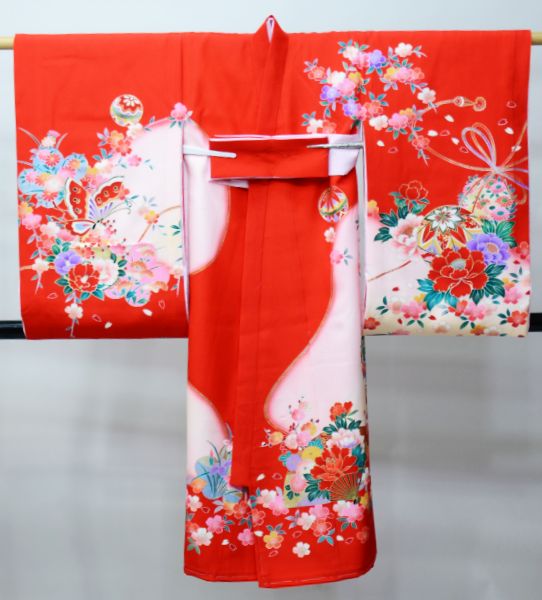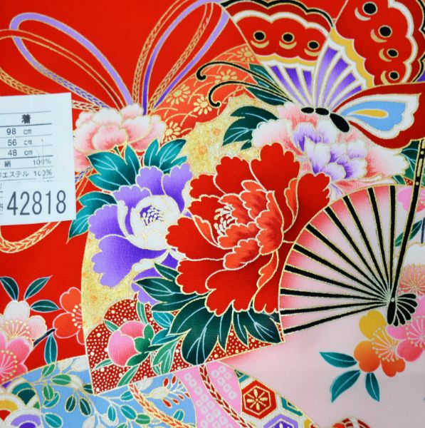 お宮参り 産着 のしめ 女児 女の子 正絹 羽二重 朱色 扇 牡丹 蝶 祝着 一つ身 掛け着 熨斗目 NO42818-2