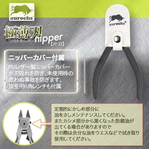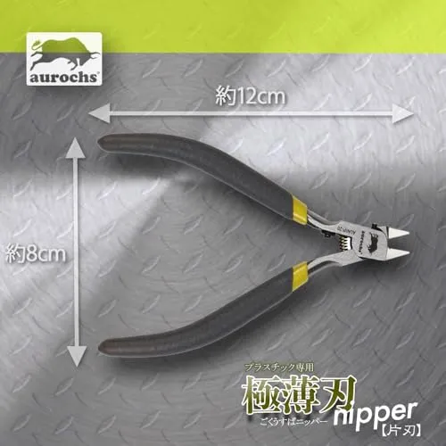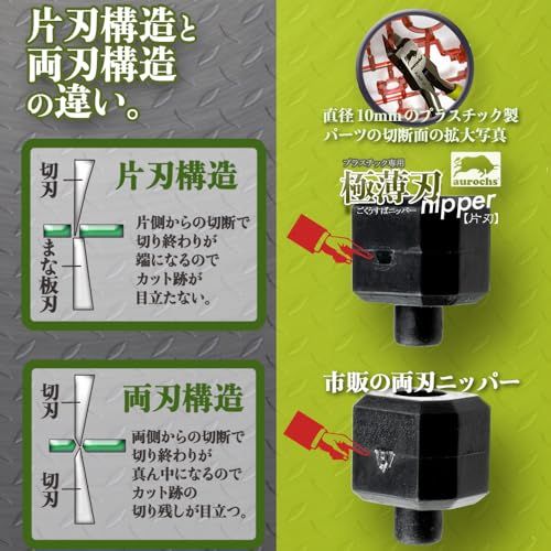 aurochs 極薄刃 ニッパー 片刃 精密 プラスチック専用 工具 プラモデル 模型 ゲートカット (グレー&ライム/右手用)`