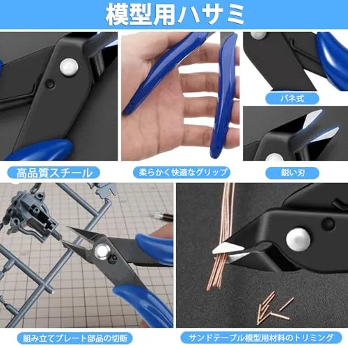 【便利なツール】ニッパープラモデル の組み立てに必要な主なツールは、プラスチックフレーム(スライド)からパーツを取り外すためのペンチ、小さなステッカーやデカールを貼るためのピンセットなどです。精密な金属加工によく使われる小型ヤスリ用の模型用工具ヤスリと、滑らかに仕上げたい表面に最適な研磨ストリップがセットになっています。 [汎用性と柔軟性] プラモデル ツールケース 高品質の素材を使用し、細部にまでこだわって作られたこのキットは、長期間の使用に耐える耐久性と安定性を備え、本格的な趣味人からプロのモデラーまで、あらゆるニーズに応えます。このキットは、ガンダムモデルからクラフトやDIYプロジェクトなどの趣味まで、様々なモデリングプロジェクトに対応する汎用性の高いツールを提供しています。 [便利な収納] ニッパー プラモデル 付属の収納ケースは、すべてのツールを整理して簡単に取り出せるため、ホームスタジオやモバイルモデラーに最適です。いつでもどこでもプロジェクトに取り組むことができます。ガンダムモデルの製作だけでなく、カーモデルの修理やカスタマイズ、その他のホビープロジェクトにも最適で、あらゆるモデラーのコレクションに欠かせない万能ツールです。
