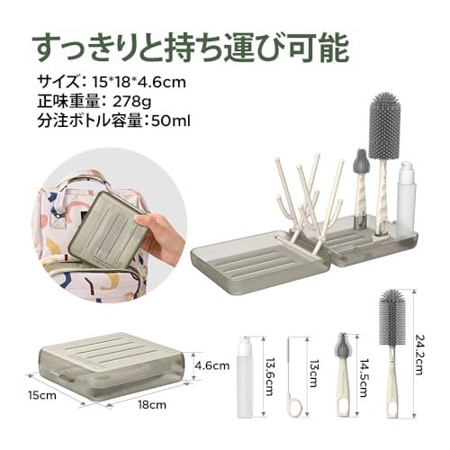 このセットは、赤ちゃんの旅行や哺乳瓶の持ち運びに最適で、外出先での哺乳瓶の洗浄を便利にします。また、携帯用としてもぴったりで、哺乳瓶ブラシと哺乳瓶乾燥ラックを簡単に持ち運ぶことができます。