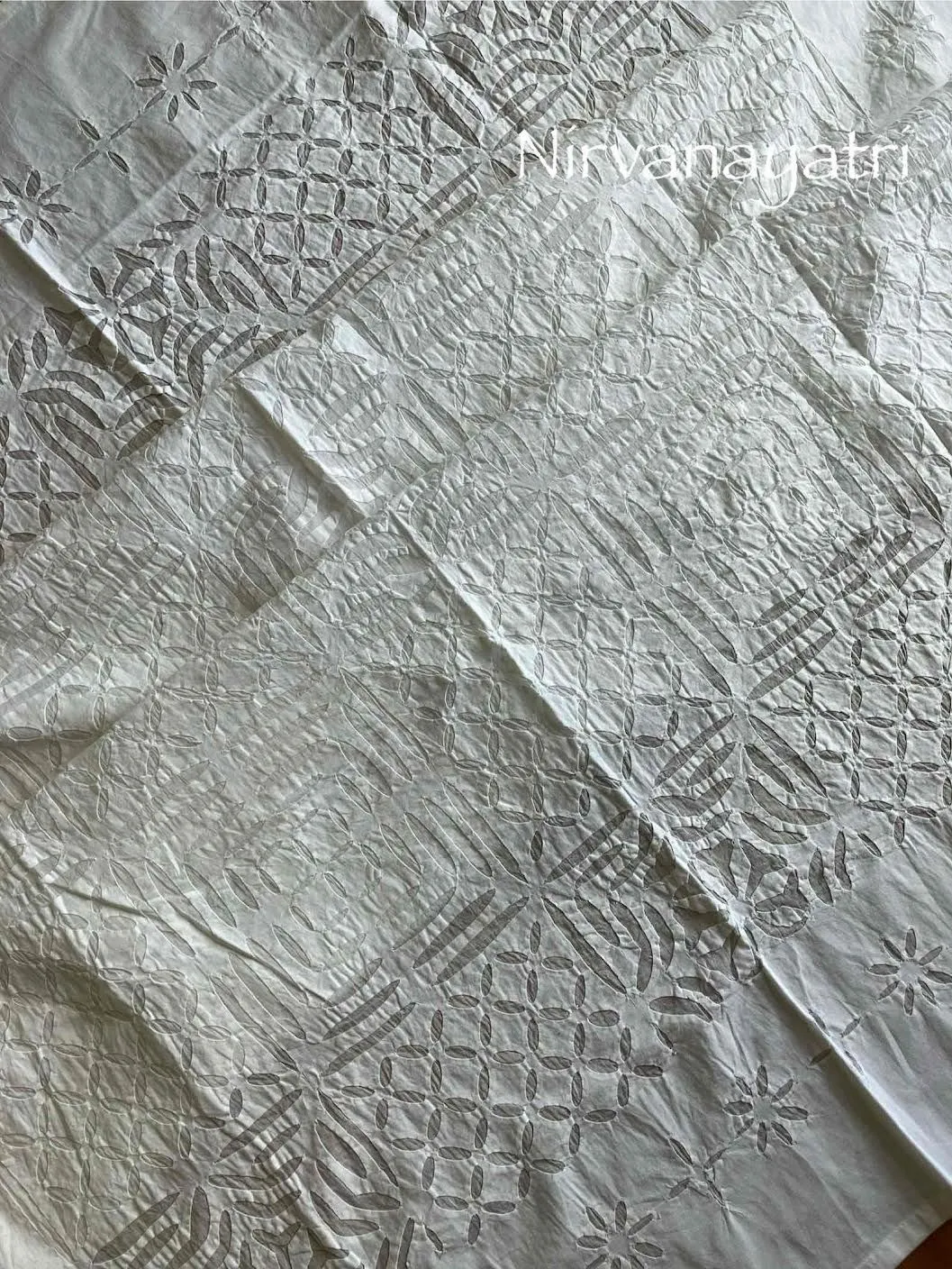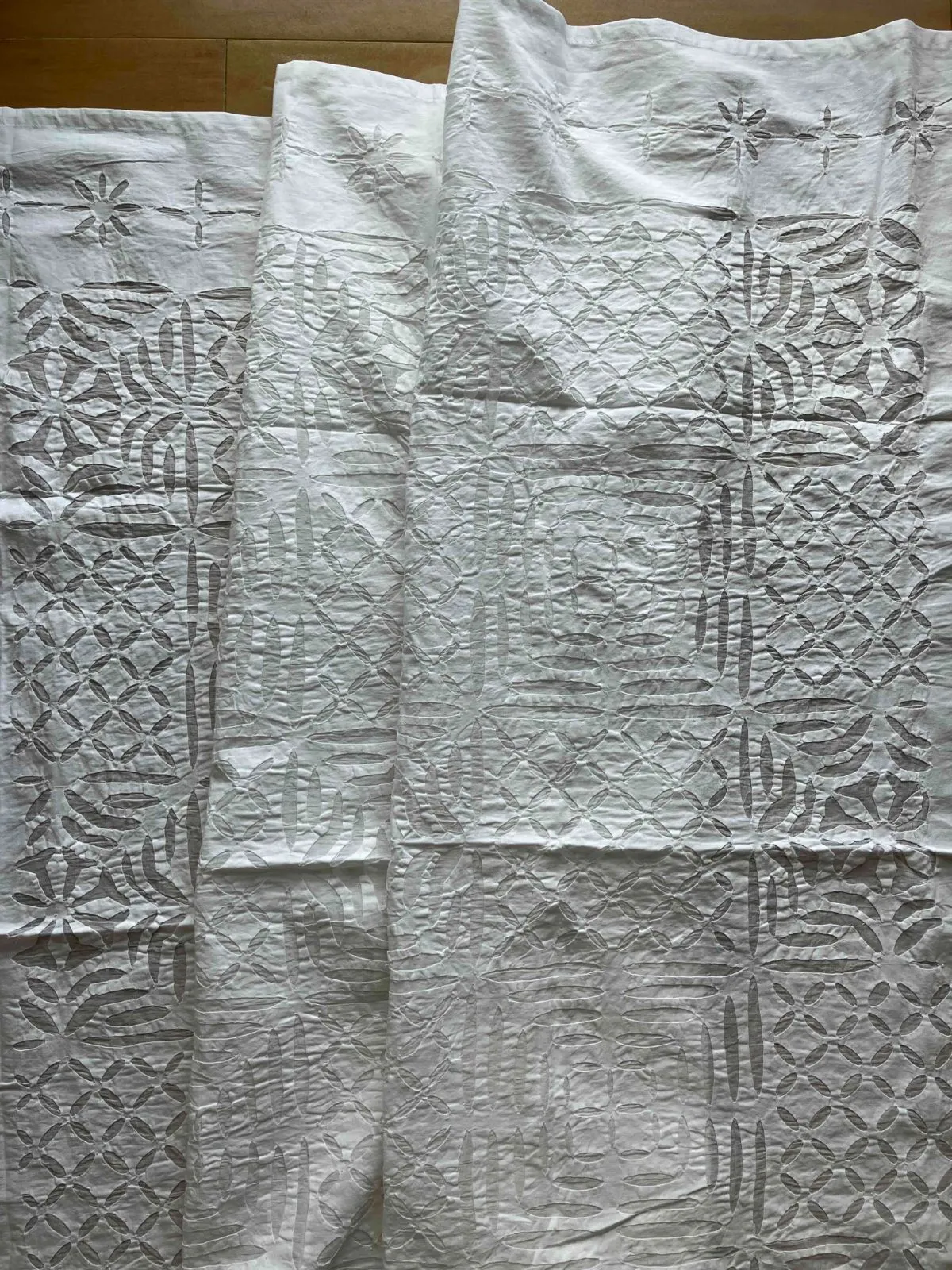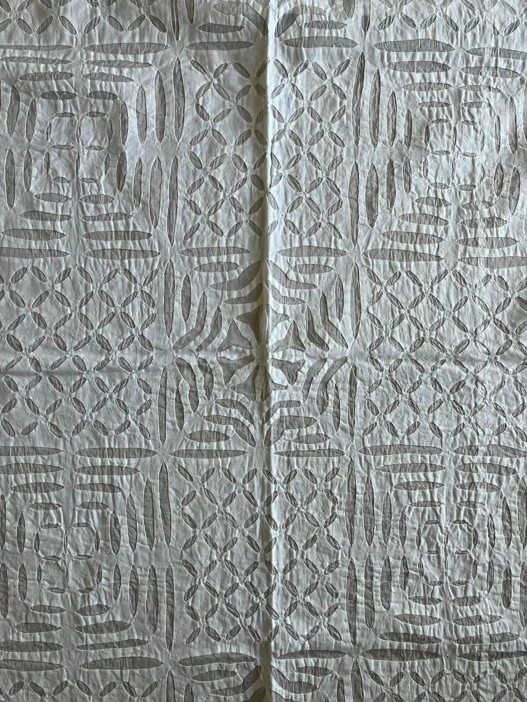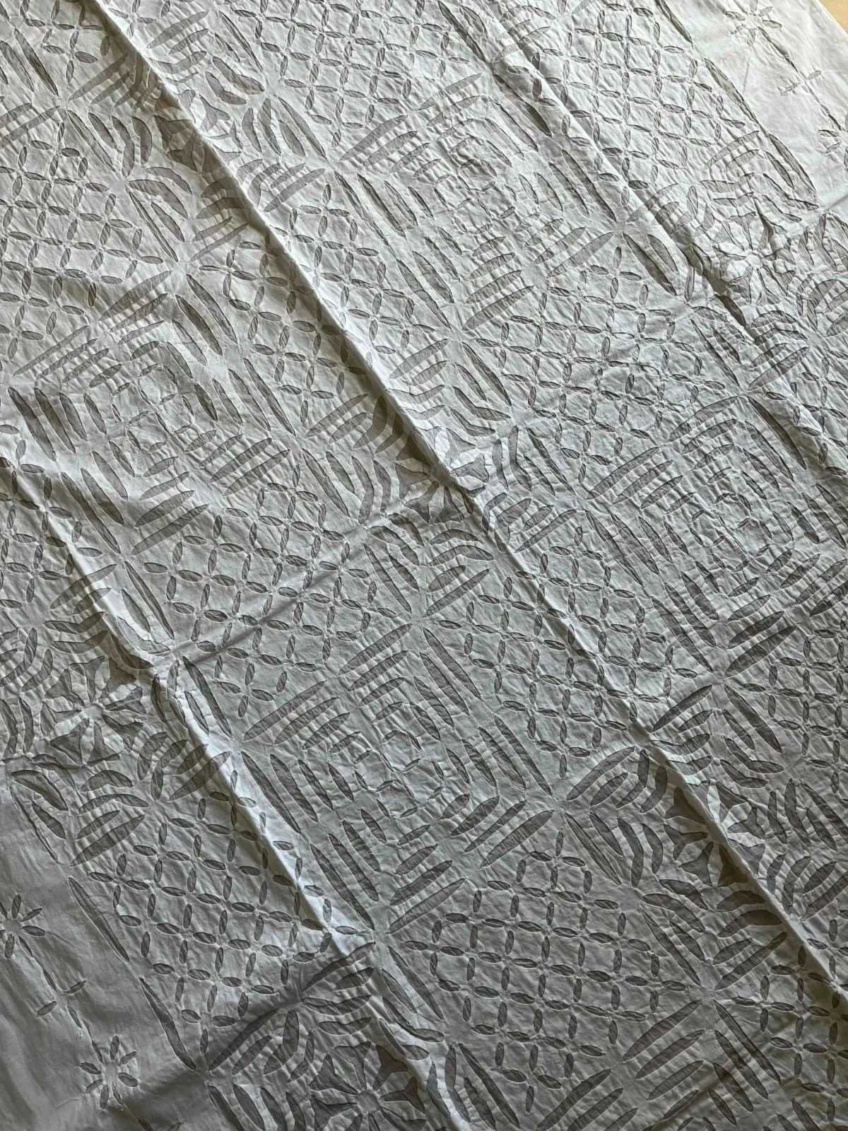 2重にコットンを重ねていますが、表面はカットワークという手法で柄を穴空けし手作業で裏布と縫い付けされています。