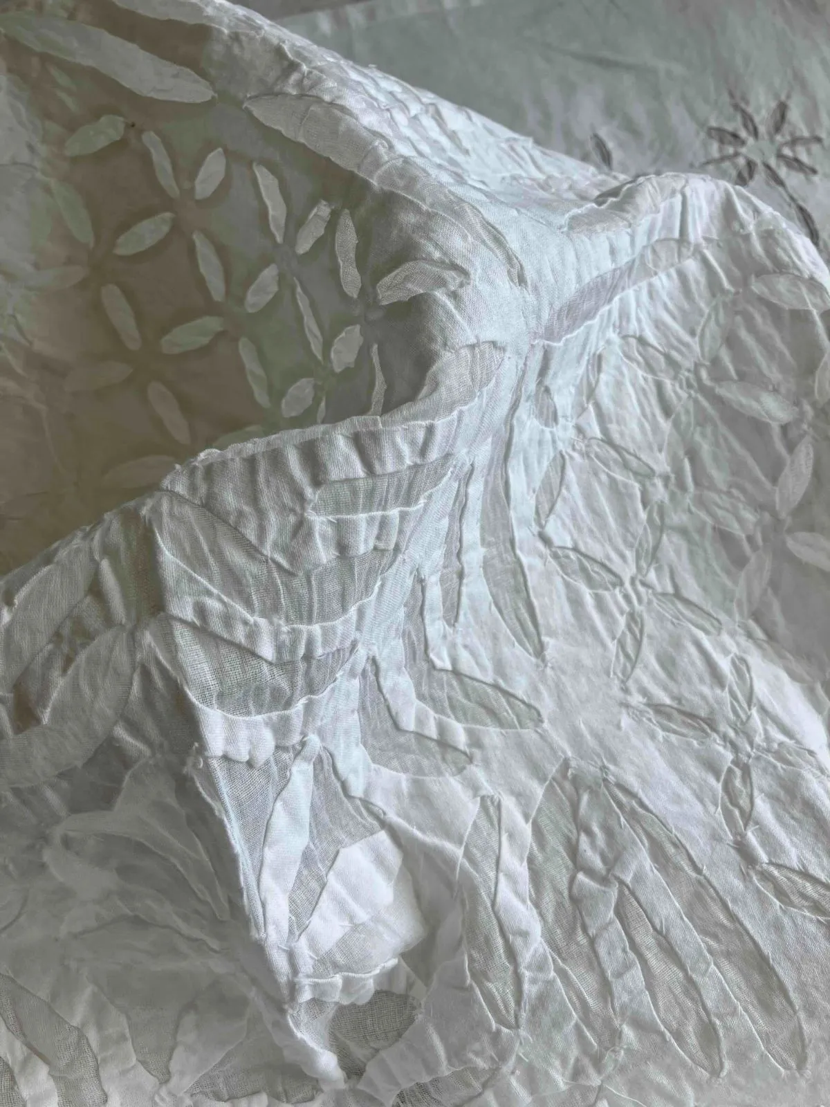 マルチカバー ベッドカバー ソファーカバー カーテン コットン100% 白 ナチュラルカラー ホワイト カットワーク セミダブル シングル オーガンジー ガーゼ ハンドメイド #B9
