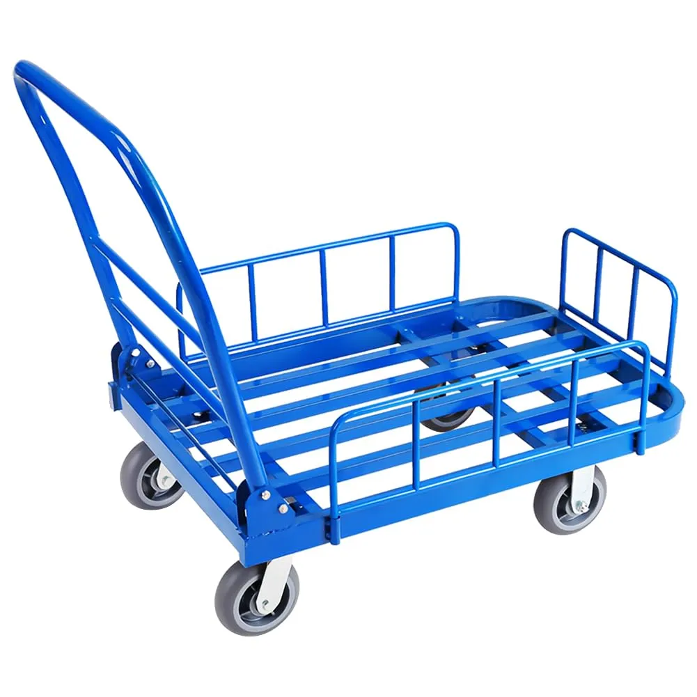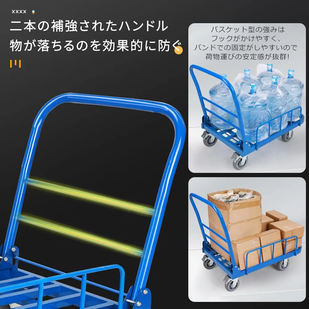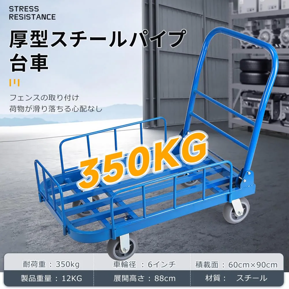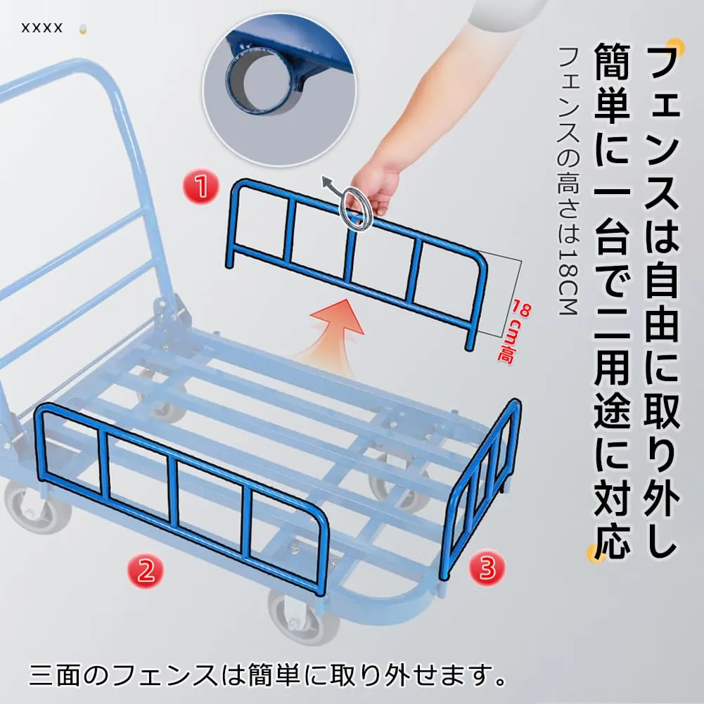 【2in1多機能台車】この台車は平台車、フェンス付き台車でも使える多機能台車です。90*60㎝のサイズの軽さで350キロまで耐えれるのは素晴らしいです。重い荷物の移動に楽になるキャリーカートです。多用途手押し台車として、倉庫や物流運搬に最適な耐久性を提供します