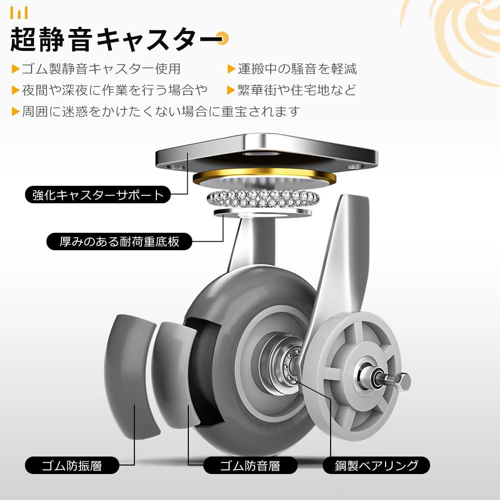 【静音性が優れ】6インチの静かな万向輪と固定輪が装備されています。これらの輪は、6インチの静かな万向輪と固定輪は、静かでスムーズな運搬を実現します。