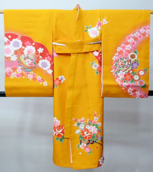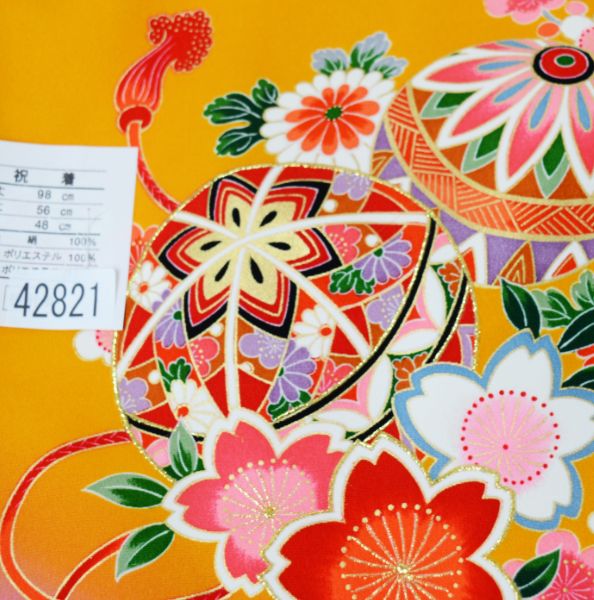 お宮参り 産着 のしめ 女児 女の子 正絹 羽二重 山吹色 金刺繍 鞠 桜 梅 祝着 一つ身 掛け着 熨斗目 NO42821-1